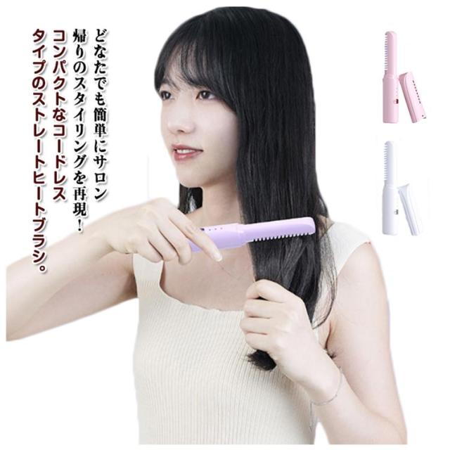 ブラシでとかすだけ 誰でも簡単ストレート ヘアアイロンブラシ ヒートブラシ ミニ 場所を選ばずスタイリング ヒートブラシ ストレートアイロン ヘアアイロン コンパクト ストレートブラシ 急速加熱 やけど防止 携帯用 旅行用 学校