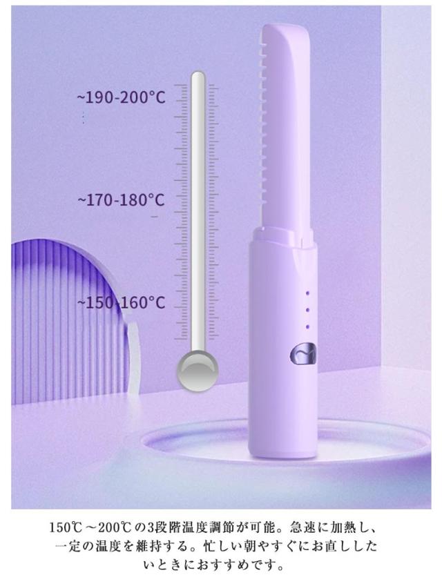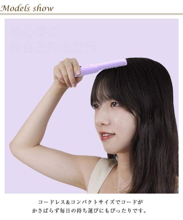 | どなたでも簡単にサロン帰りのスタイリングを再現!コンパクトなコードレスタイプのストレートヒートブラシ。 コードレス&コンパクトサイズでコードがかさばらず毎日の持ち運びにもぴったりです。 場所を選ばない便利なUSB充電。コンセントのない場所でもご使用いただけます。 150℃〜200℃の3段階温度調節が可能。急速に加熱し、一定の温度を維持する。忙しい朝やすぐにお直ししたいときにおすすめです。 ブラシ型だからヘアアイロン初心者の方でも簡単に前髪のふんわりカールが作れる。 前後のスタイリングもらくらく!初心者にも簡単に使えます。 | |