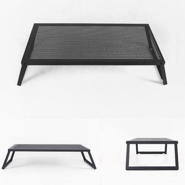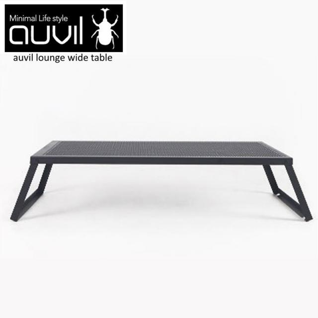 auvil/オーヴィル ラウンジワイドテーブル 拡張性が豊富で無限の可能性を秘めたスタイリッシュかつ無骨なアウトドアローテーブル 折れ脚テーブルはブラックアイアンテーブルで天板はパンチング加工 別売りパーツで連結やアレンジが可能 AVL-032