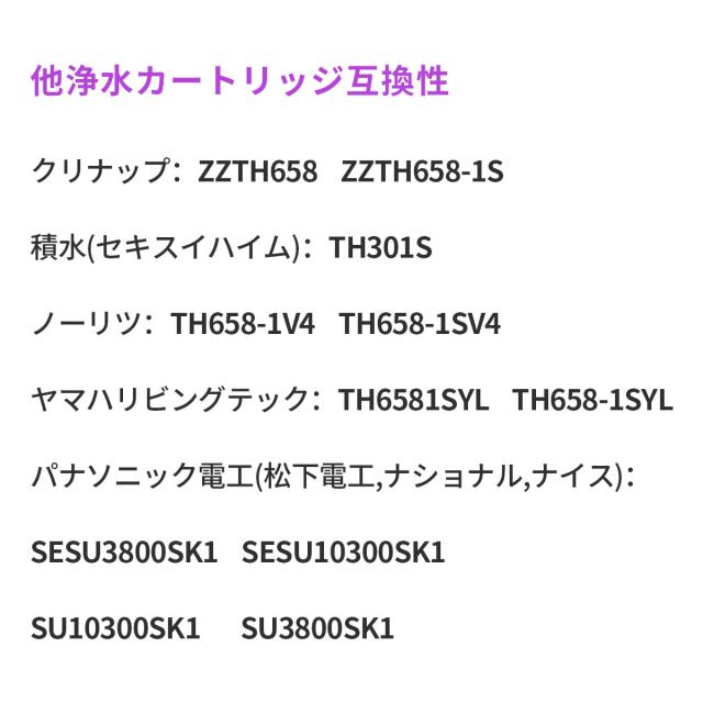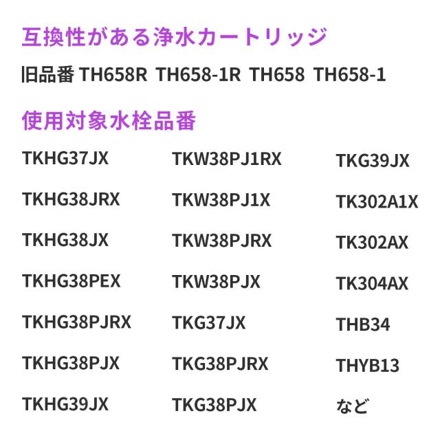 | TKHG37JX、TKG37JX、TKGG37E、TKGG38ER、TKGG38EZ、TKHG38JRX、TKHG38JX、TKHG38PEX、TKHG38PJRX、TKHG38PJRKX、TKHG38PJX、TKW38PJ1RX、TKW38PJ1X、TKW38PJRX、TKW38PJX、TKG38PJRX、TKG38PJX、TKW38PJRKX、TKHG38PERX、TKHG38PEKX、TKGG38E、TKGG38E1、TKGG39E、TKG39JX、TKHG39JX、TK302A1X、TK302AX、TK304AX、TKS05308J、TKS05308Z、TKS05307J、TKS05317J、TKS05318、JTHB34、THYB13、等 他の互換性のある浄水カートリッジ品番: クリナップ:ZZTH658、ZZTH658-1S 積水(セキスイハイム):TH301S ノーリツ:TH658-1V4、TH658-1SV4R ヤマハリビングテック:TH6581SYL、TH658-1SYL パナソニック電工(松下電工,ナショナル,ナイス):SESU3800SK1、SESU10300SK1、SU10300SK1、SU3800SK1 ※購入検討商品に関してご不明な点やご不安をお持ちのお客様は、ご購入前にお問い合わせください。 |