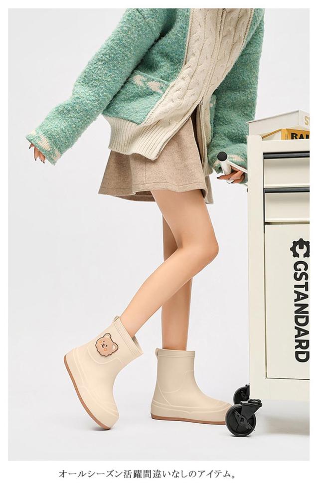 柔らか くま レインシューズ 可愛い レディース レインブーツ 雨靴 長靴 レインブーツ ショートブーツ おしゃれ アニマル柄 熊 歩きやすい 履きやすい 雪遊び 雪 雨 雨具 オールシーズン