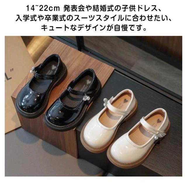| 14~22cm 発表会や結婚式の子供ドレス、入学式や卒業式のスーツスタイルに合わせたい、キュートなデザインが自慢です。 本革に近い質感があるPUレザーを採用します 華やかなフォーマルシーンはもちろん、ちょっとしたお出かけやお食事会などおめかしシーンをエレガントに彩ってくれます。 | |