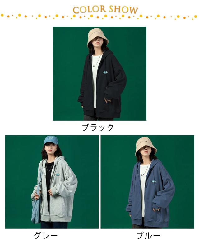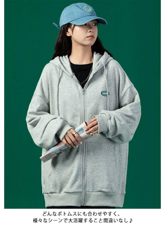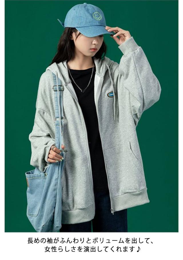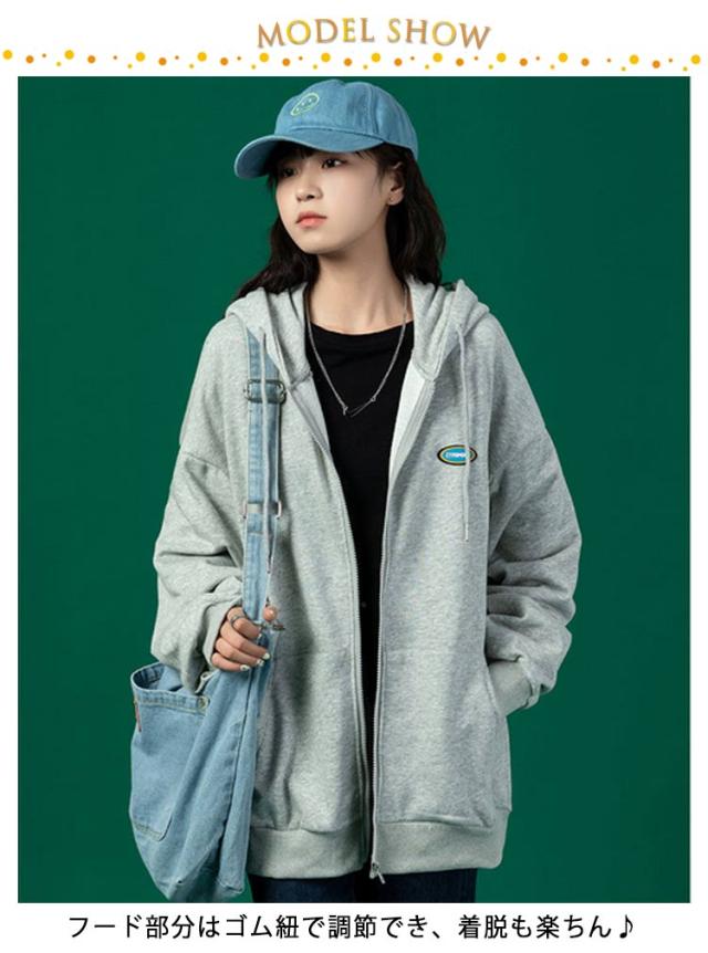 韓国 レディース スウェット 大きめ 春 ジップアップ パーカー 薄手 おしゃれ 長袖 トレーナー 大きいサイズ パーカー フード付き 体型カバー オーバーサイズ ゆったり