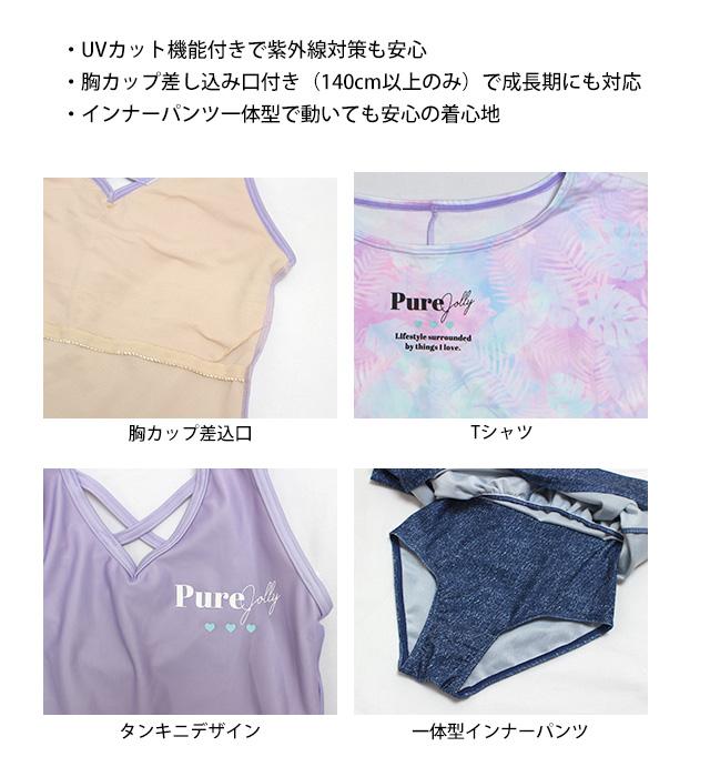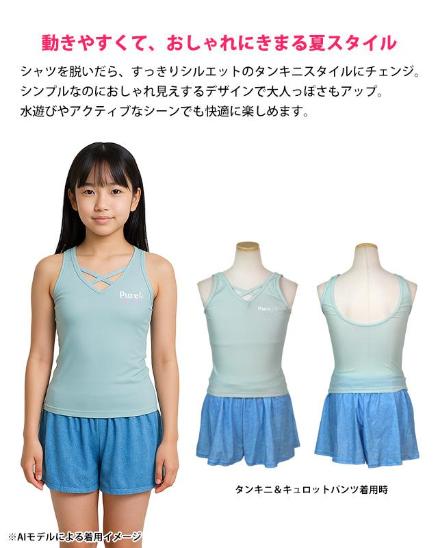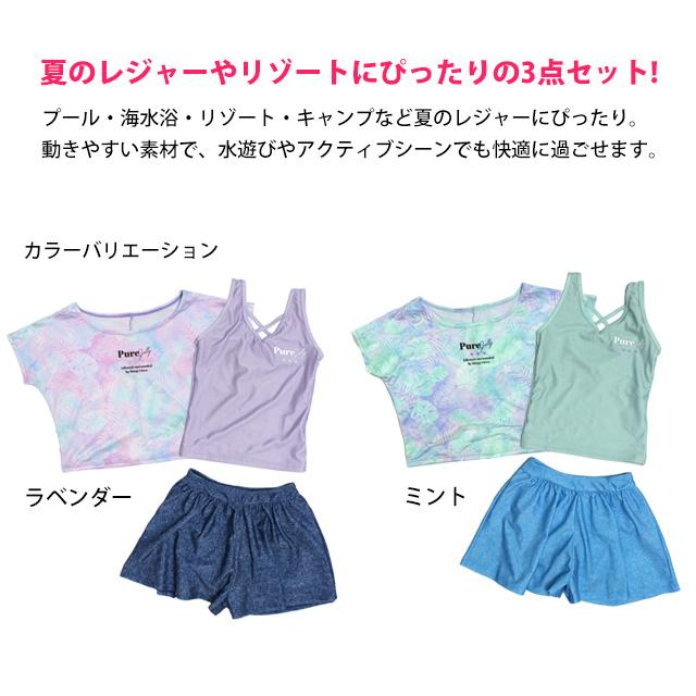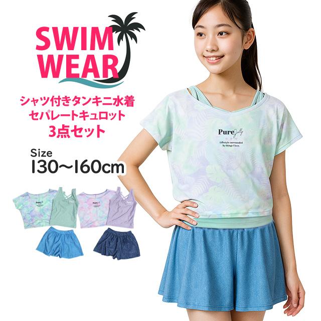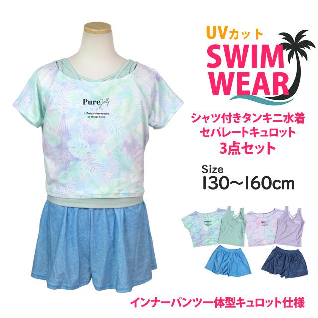 水着 女の子 子供 キッズ ジュニア セパレート水着 タンキニ水着 Tシャツ付き キュロット 3点セット 130cm 140cm 150cm 160cm