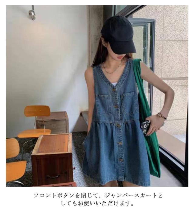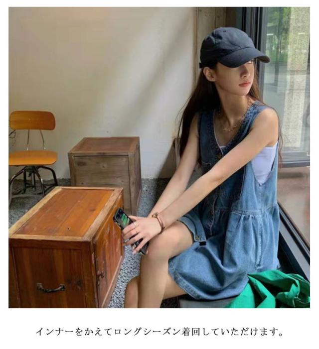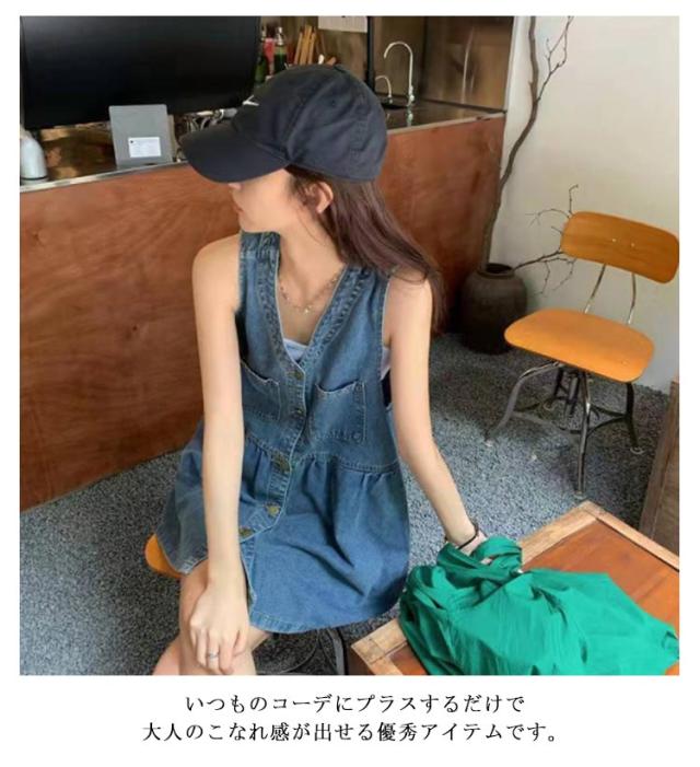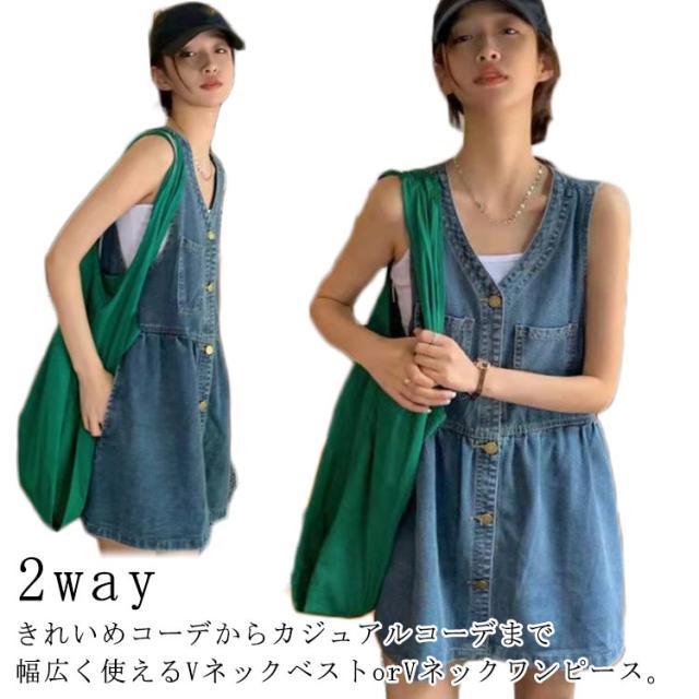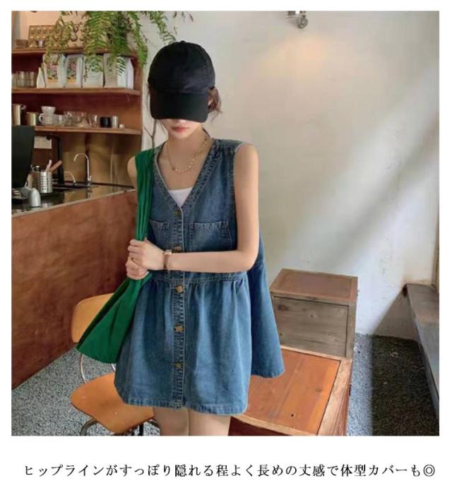 トップス デニムワンピース デニムミニワンピース ベスト レディース ジレ ミニワンピ Vネック ノースリーブ ロング デニム デニム 可愛い 秋 レイヤード ゆったり 春 ロングベスト デニムベスト 大人 重ね着 おしゃれ カジュアル 無地
