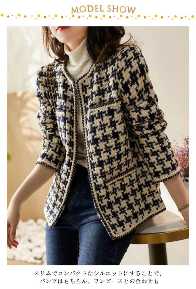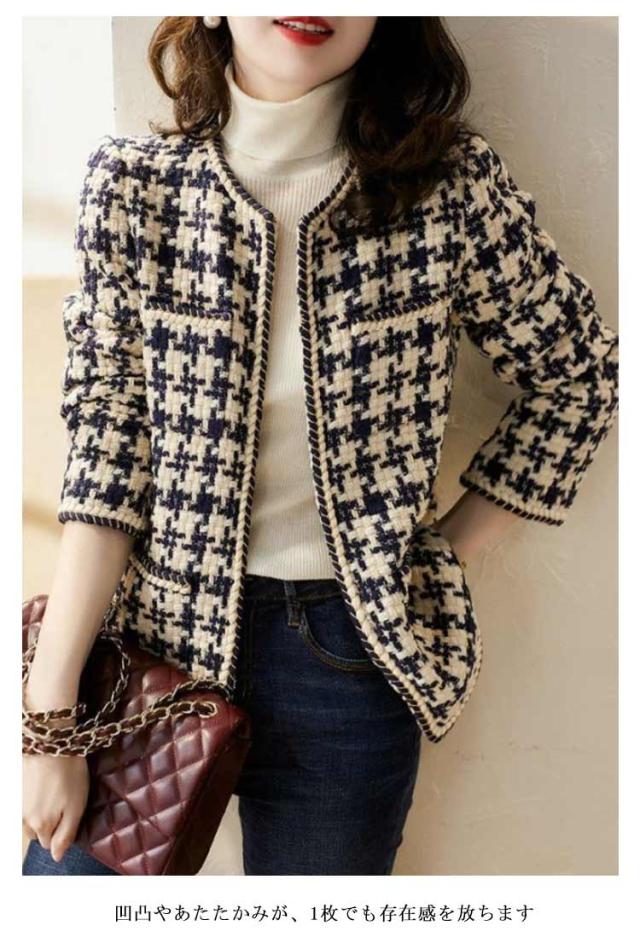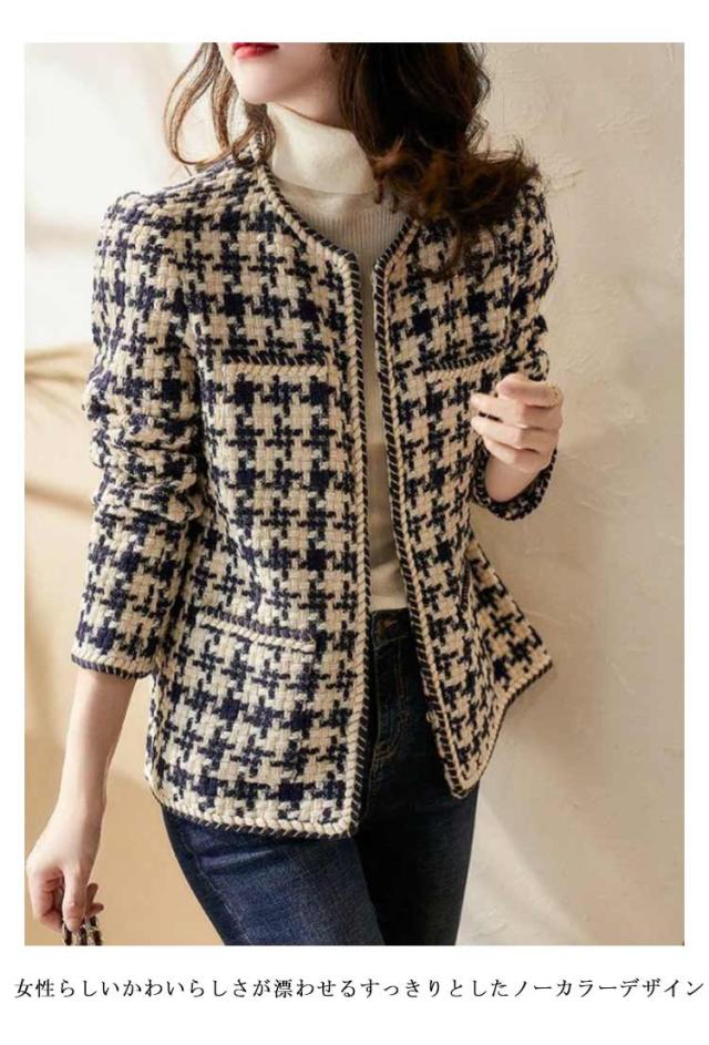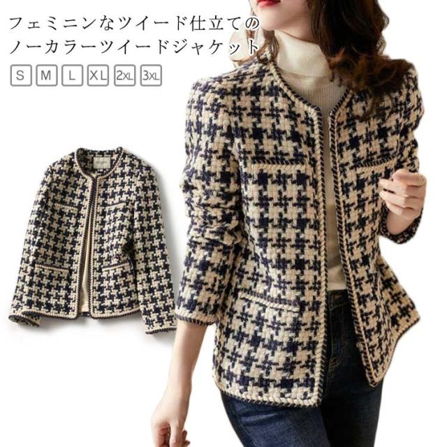 ノーカラージャケット ツイード ジャケット レディース 入学式 入園式 ツイード アウター 春 秋 冬 オフィスカジュアル カジュアル ママ 服装 母親 ノーカラー カラーレス ショート丈 ミドル丈 オフィス セレモニー 七五三