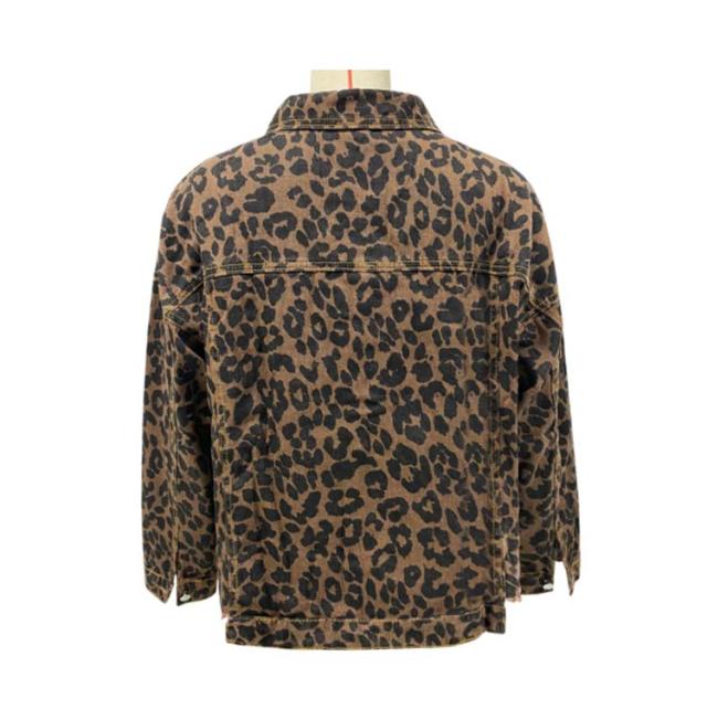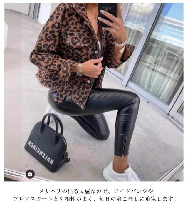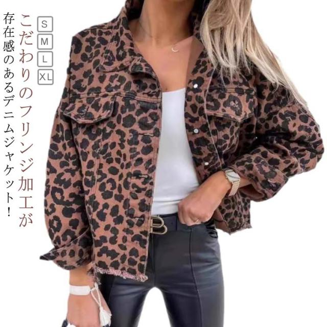 レオパード柄 裾フリンジGジャン デニムジャケット Gジャン ジージャン レディース ヒョウ柄 ショート丈 アウター フリンジ付 柔らかデニム ストレッチ デニムアウター トップス カジュアル きれいめ おしゃれ かわいい
