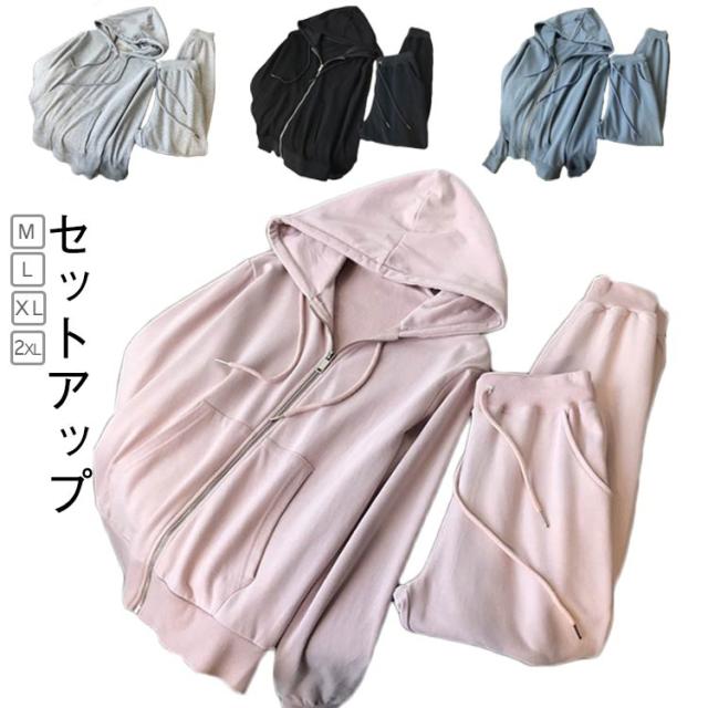 セットアップ スウェットパーカー 無地 長袖 レディース 部屋着 上下 セット パーカー上下セット 大きいサイズ ルームウェア スウェットパンツ スエットパンツ ジャージ 大きい 薄手 トップス ジョギング ヨガ 運動着 ダンス