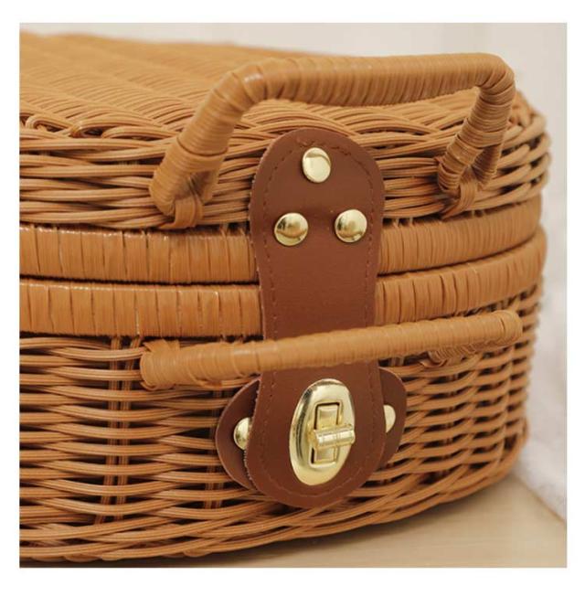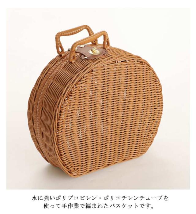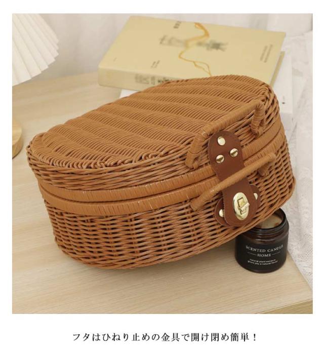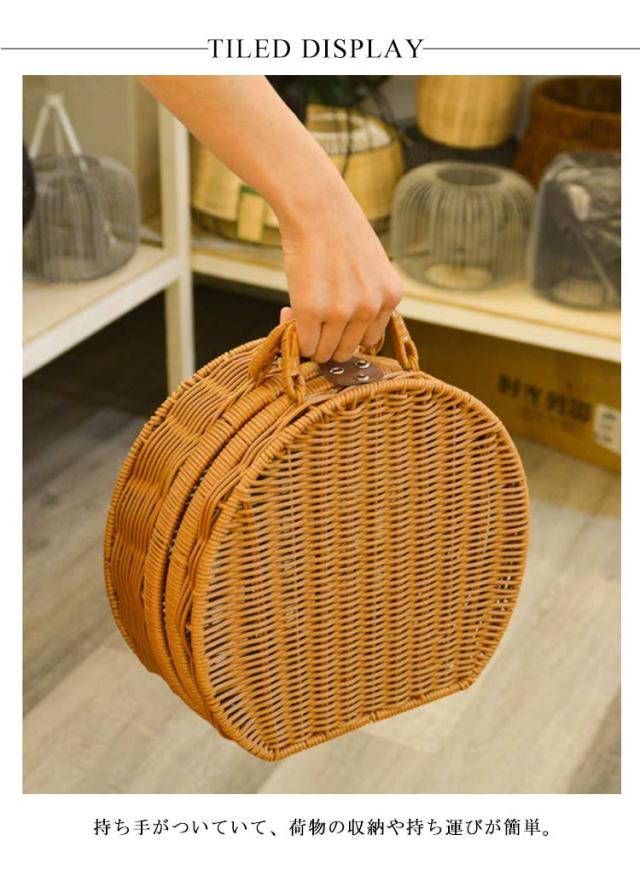トランク ピクニックバスケット 丸型 カゴバッグ ラタンバスケット フェイク ラタン かごバスケット 籠バッグ ピクニック バスケット 持ち手 洗える トランクバスケット 籐かご ランチバッグ 収納ボックス 収納バスケット ラタン風 ひねり金具