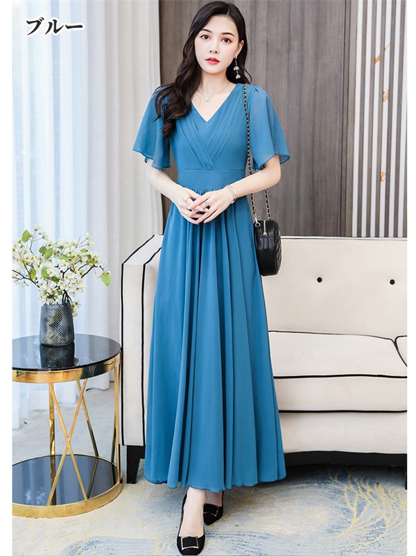 全6色 M-4L ワンピース レディース シフォン リゾートワンピース ロング 半袖 シフォン 透け Aライン ハワイ 沖縄 旅行用 大人 20代 30代 40代 可愛い 無地 シンプル お洒落 ふんわり フェミニン 薄手 Vネック 体型カバー シースルー かわいい おしゃれ 大きいサイズ 黒 赤