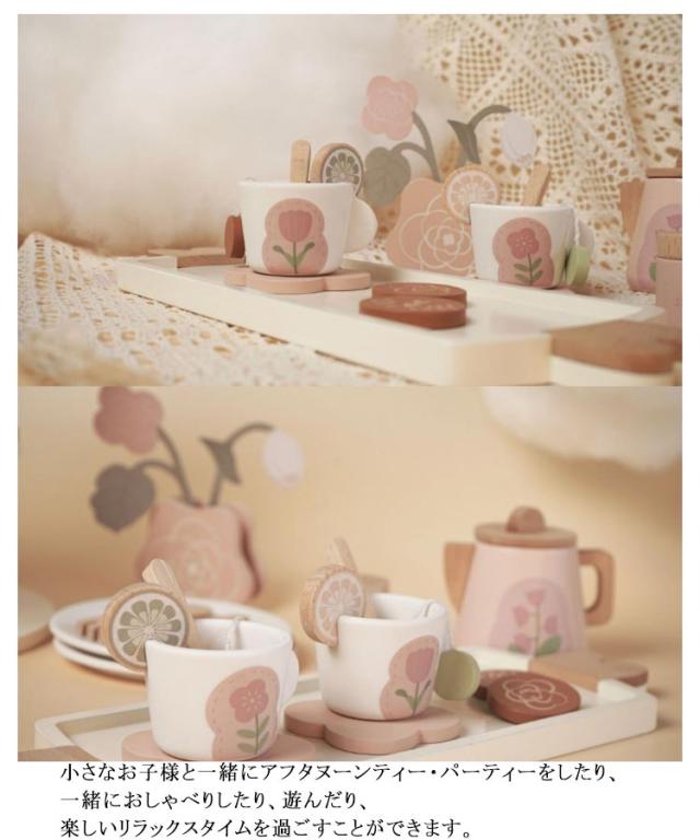 おままごとセット ティーセット 木製 知育玩具 おもちゃ 木のおもちゃ ままごとセット アフタヌーンティー デザート セット ごっこ遊び 調理ごっこ ティーカップ ティーポット キッチン ごっこ遊び かわいい おしゃれ