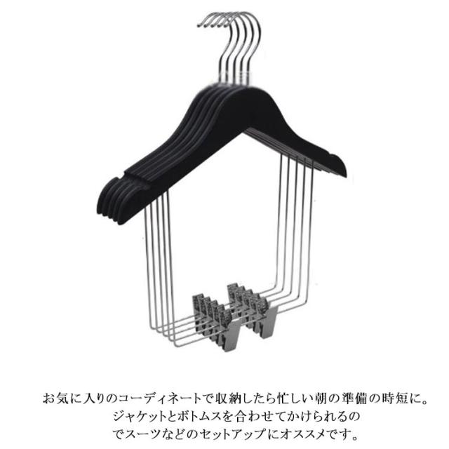 【5個セット】 トップスとボトム 同時収納 ハンガー セットアップ用 ハンガー 衣類ハンガー 収納ハンガー スーツ用ハンガー 上下セット ハンガー 大人用 子供用 型崩れしない 木製 スリム 省スペース クロゼットハンガー