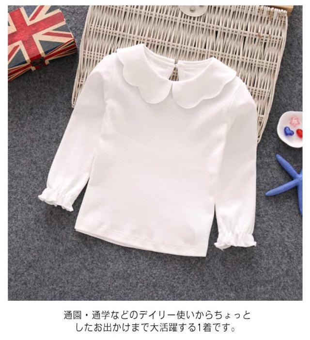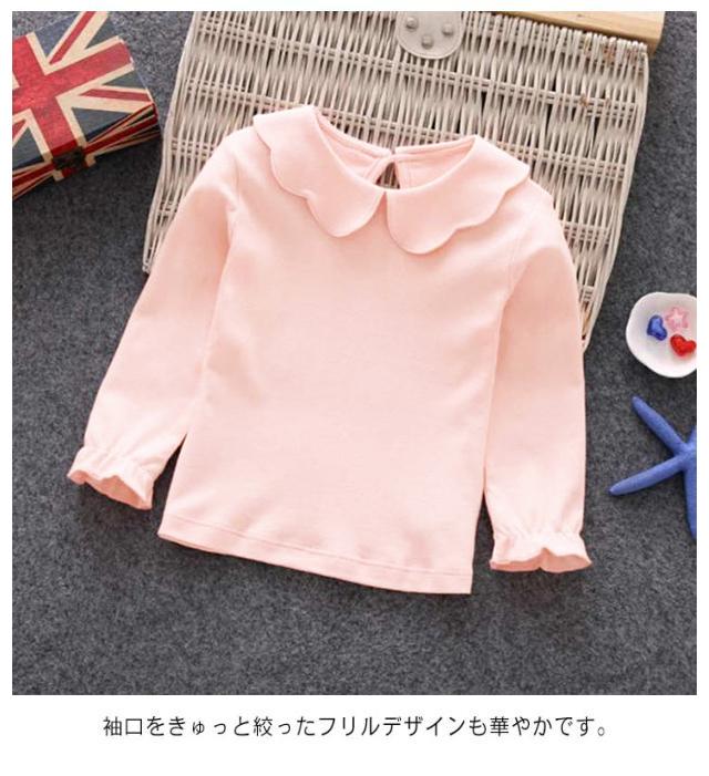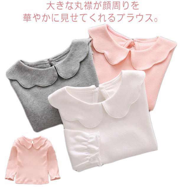 キッズ 女の子 丸襟 ブラウス 80 90 100 110 120 130 ベビー 子供 長袖 Tシャツ カットソー ピンク グレー 子供服 ロンT 女児 入園式 入学式 綿 無地 トップス シンプル 通園 通学 お出かけ 業式 発表会 七五三 結婚式 冠婚葬祭