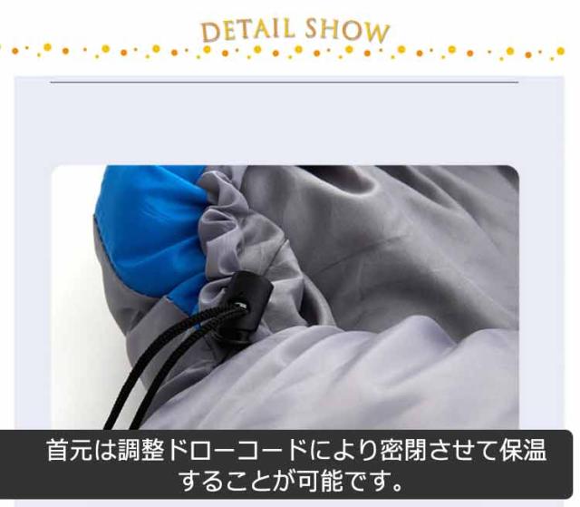 | コンパクトサイズに収納OKの封筒型寝袋です。 表地は耐久性のあるポリエステル生地を採用しており、肌触りが良く、速乾性抜群、汚れもに強い。 防寒性が優れいる中綿入りタイプ、保温性能が高いです。 首元は調整ドローコードにより密閉させて保温することが可能です。 キャンプ、BBQ、車、登山、アウトドア、天体観測、ツーリング、花見、会社残業、自宅での敷き布団、掛け布団代わり、災害時など。 | |