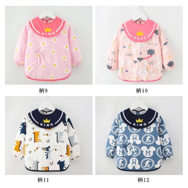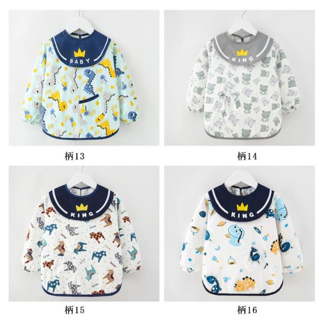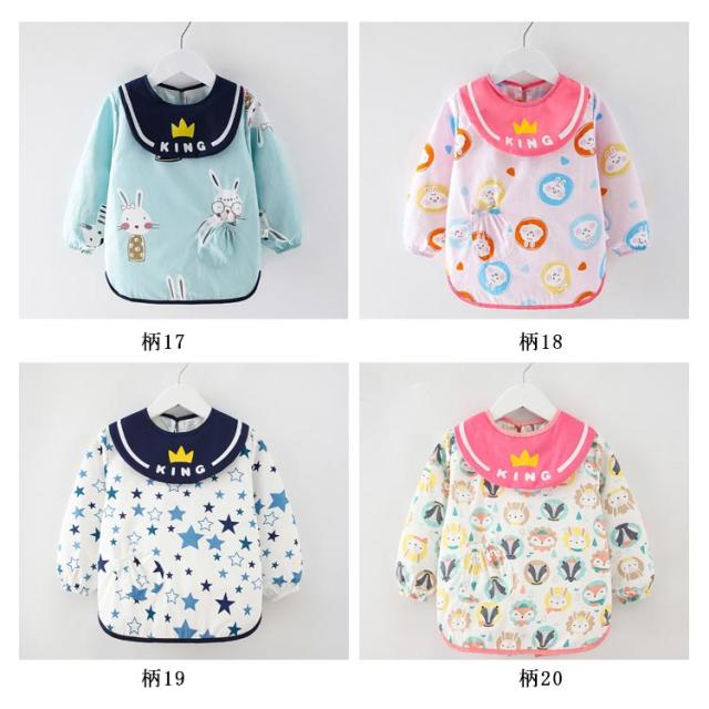 長袖スモック キッズ ベビー用 スモック 絵かき 粘土遊び 夏 秋 ベビー 動物柄 女の子 男の子 プレイウエア ベビースモック 防水層付き お食事 エプロン 汚れ防止 お砂場着 砂遊び 保育園 幼稚園 赤ちゃん 幼児 春 冬 可愛い 90 100 110 120