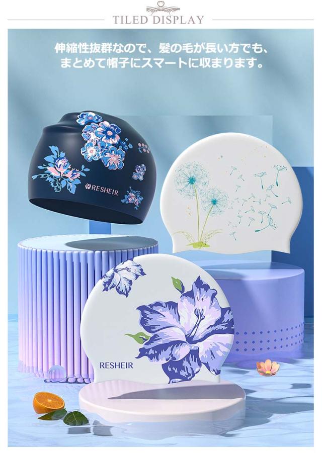 スイムキャップ レディース 大人 ロングヘア シリコン かわいい 水泳 帽子 キャップ 大人 大きいサイズ 花柄 上品 おしゃれ 水着用 スイムアクセサリー フィットネス水着 キャップ 水泳用帽子