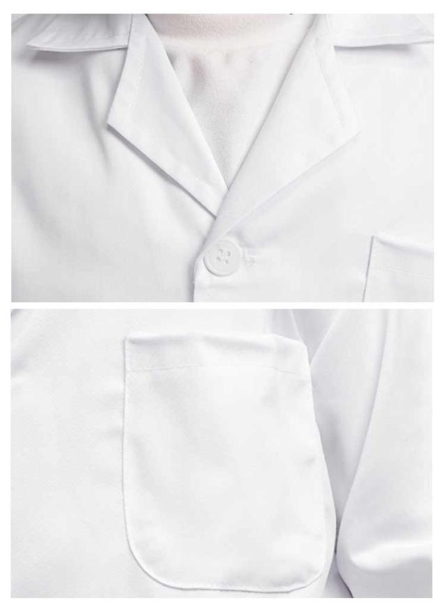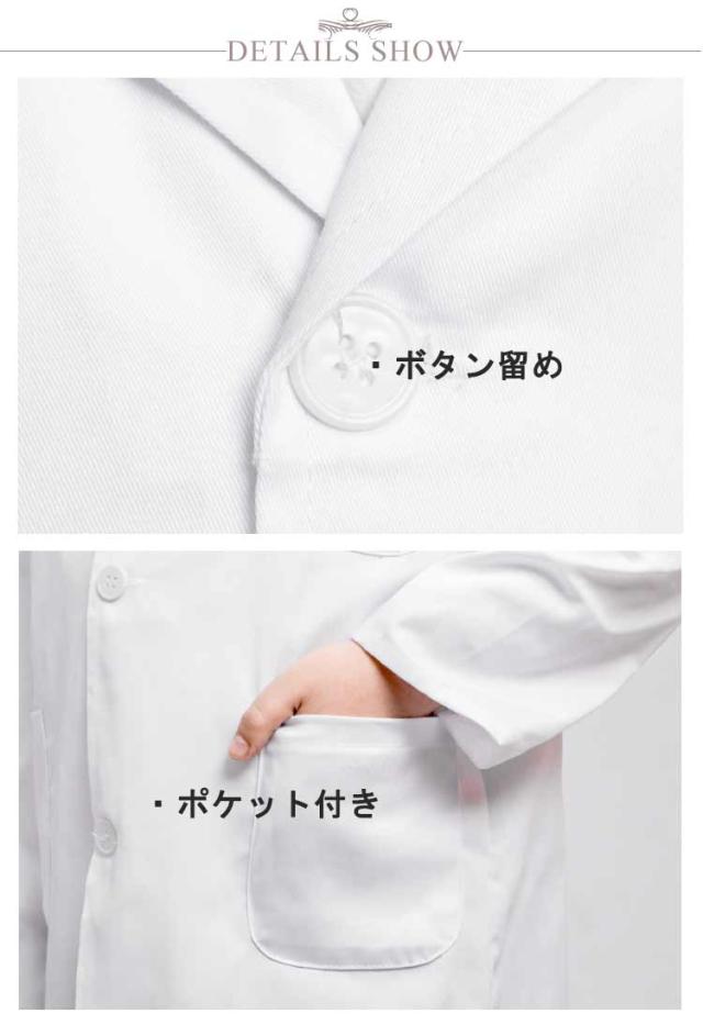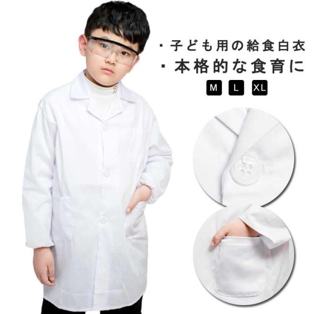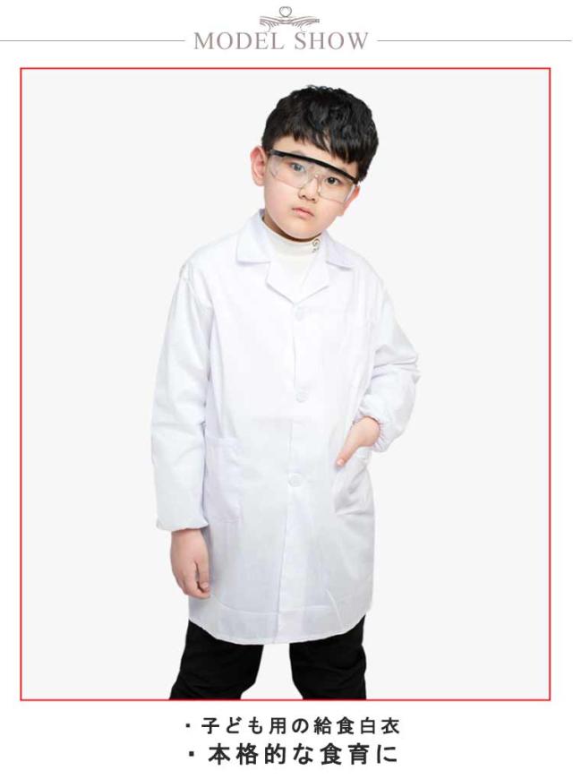 | ・子ども用の給食白衣 ・本格的な食育に ・薬品を使った実験や研究にも安心な長めの白衣コート ・ボタン留め ・ポケット付き | |