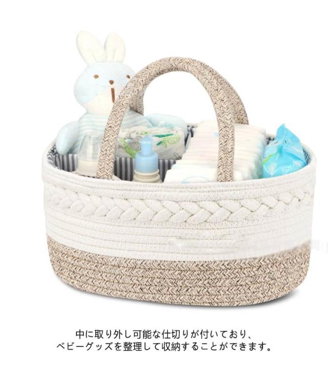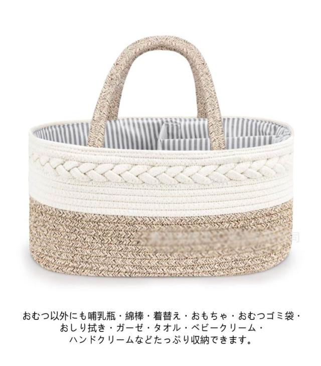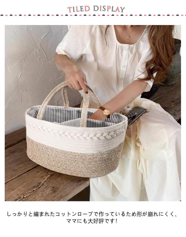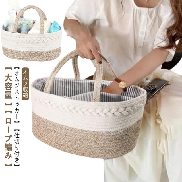 おむつストッカー コットンロープ ベビー用品 オムツ収納 オムツバッグ おむつポーチ 収納ボックス 大容量 仕切り 小物入れ 持ち運び 出産祝い 新生児 赤ちゃん 送料無料