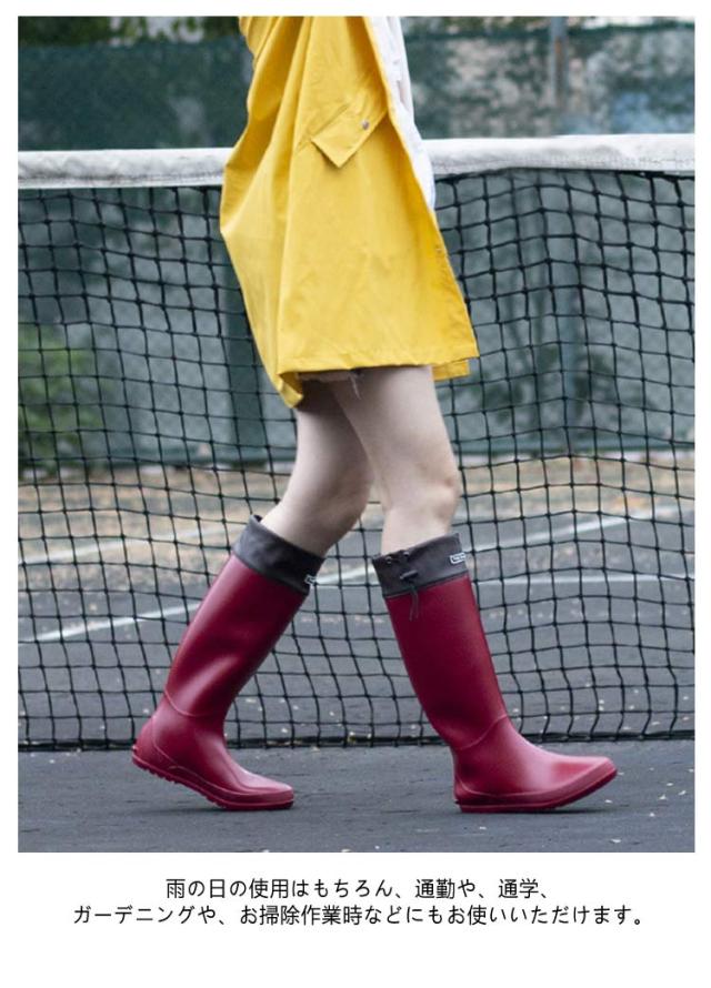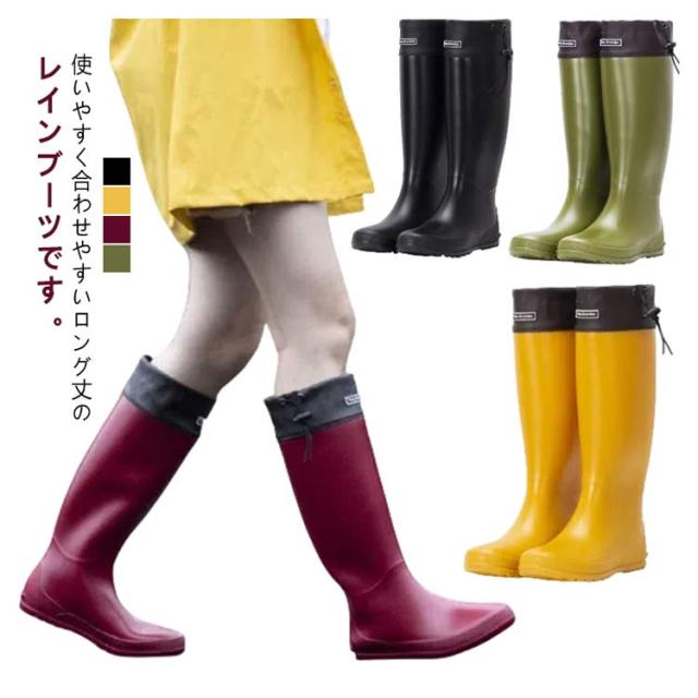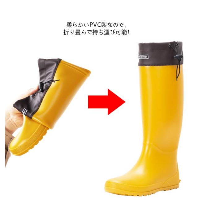 | 使いやすく合わせやすいロング丈のレインブーツです。 水に強いPVC素材を採用し、一体成型なので、つぎ目がなく完全防水となります。 柔らかいPVC製なので、折り畳んで持ち運び可能! 底は凹凸が入っているので、濡れた地面でも滑りにくく気楽に履けます。 履き口がドローコードで絞れるため風雨や泥などの侵入を防ぎます。 雨の日の使用はもちろん、通勤や、通学、ガーデニングや、お掃除作業時などにもお使いいただけます。 | |