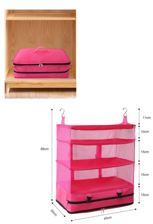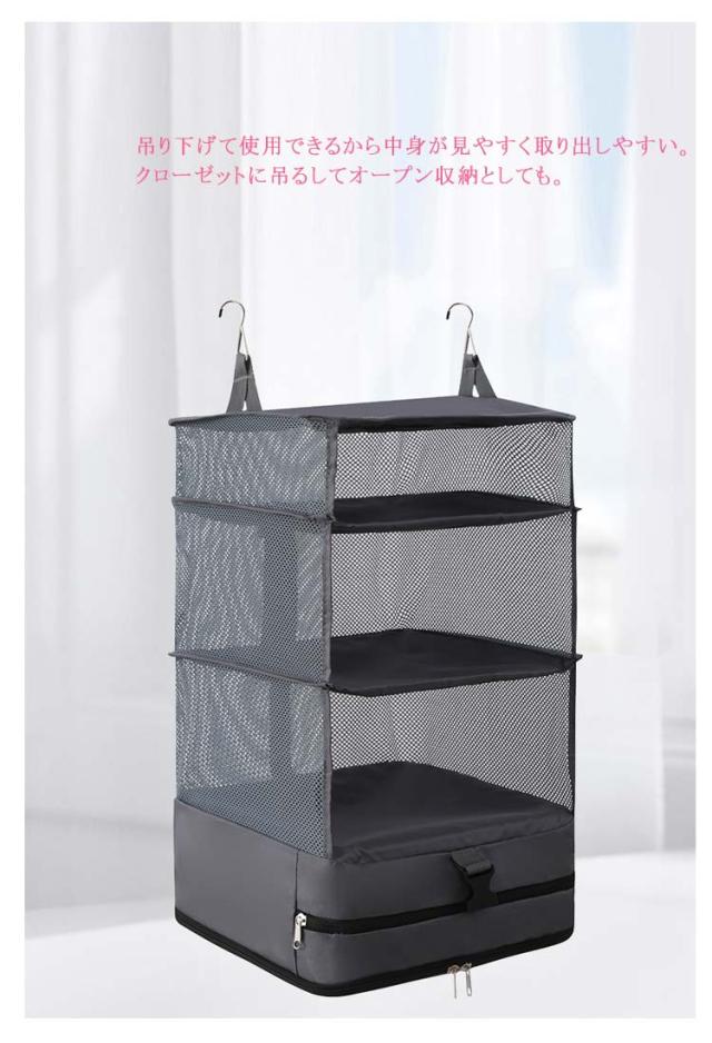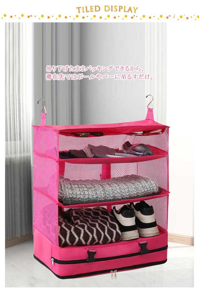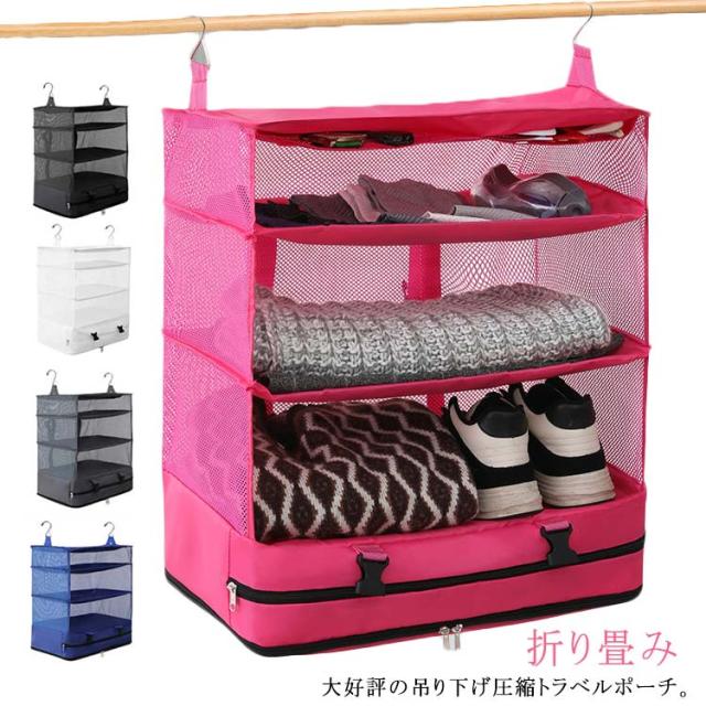 旅行収納袋 吊り下げ フック付き トラベルポーチ 4段式 トラベル ポーチ バッグ 着替え 衣類 小物 収納ポーチ 折り畳み 旅行 出張 トラベルバッグ 圧縮バッグ 圧縮袋 バッグインバッグ 仕分け 防水 30×30×66cm 45×30×66cm