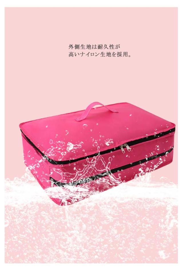 | 大好評の吊り下げ圧縮トラベルポーチ。 吊り下げたままパッキングできるから、滞在先ではポールやバーに吊るすだけ。 仕切りごとにまとめて収納すれば、着いてからも翌日も準備に手間取りません。 外側生地は耐久性が高いナイロン生地を採用。 繰り返し使っても傷みにくいのが嬉しい◎ 吊り下げて使用できるから中身が見やすく取り出しやすい。 クローゼットに吊るしてオープン収納としても。 サイドには通気性のよいメッシュ素材を使用。 使わない時はコンパクトにたためます。 もちろん、旅行だけでなく、クローゼットでの収納や入院時などにもおすすめ。 | |
