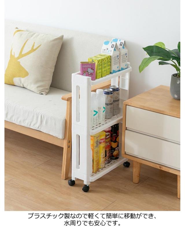 すきま収納 13.8cm 隙間収納 キャスター付き キッチンワゴン スリム ストッカー 3段 キャスター付き 4段 冷蔵庫横 キッチン収納 スキマ収納 ストッカー 細い ラック 白 ホワイト ワゴン プラスチック製 台所 キッチン 洗面所