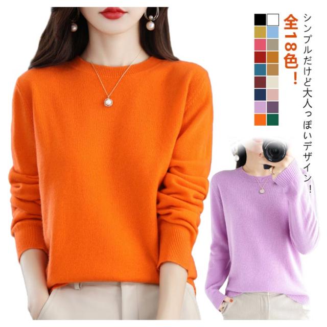 クルーネック ニット レディース セーター トップス ニット 長袖 ラウンドヘム プルオーバー カラーニット レディースカットソー ニット 大きいサイズ 春物 秋物 冬物 ルームウェア 送料無料