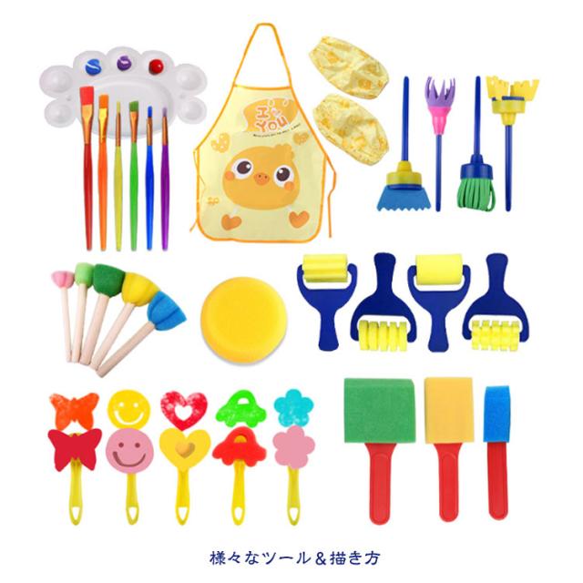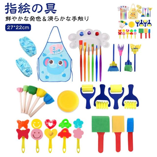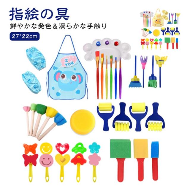 32点セット 指絵用 スタンプ スポンジブラシ付 手形アート フィンガーペインティング 子どもの感性を刺激 絵画ツール付き 絵画 ツール アート 用品 セット おうちアート 指絵 遊び 手形 保育 絵の具 アート 知育 創作 製作