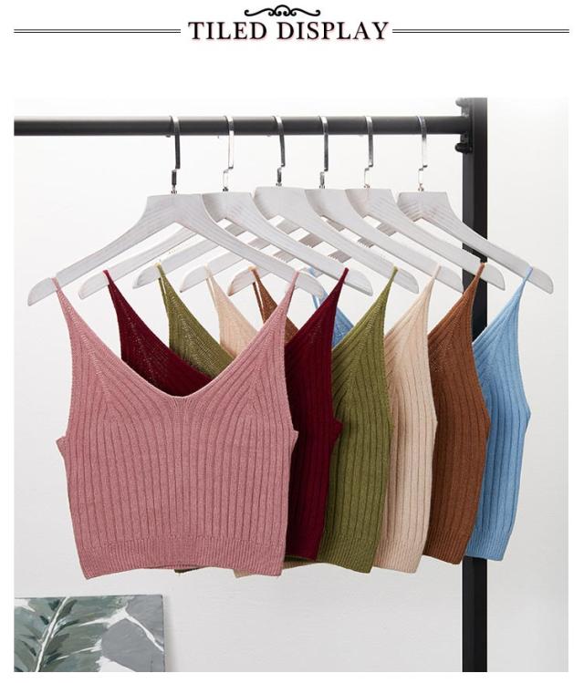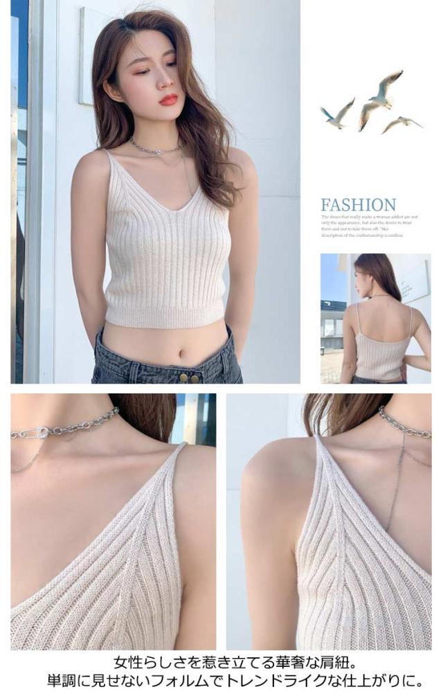 送料無料 キャミソール サマーニット ノースリーブ トップス レディース リブニット へそ出し ショート丈 セクシー ビスチェ カットソー 夏 Vネック シンプル 無地 かわいい セクシー キャミ 肌見せ