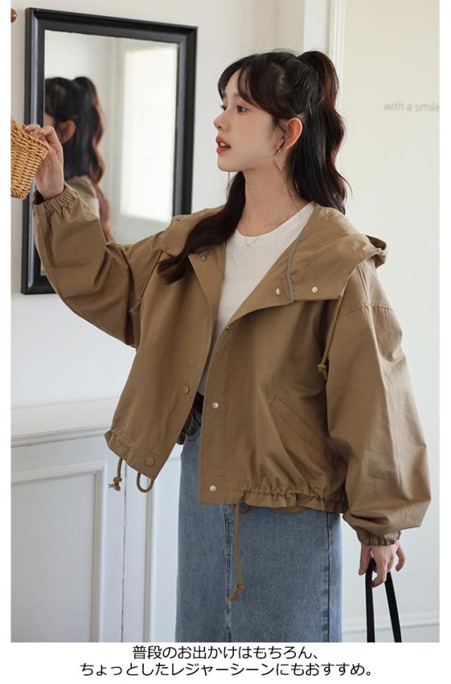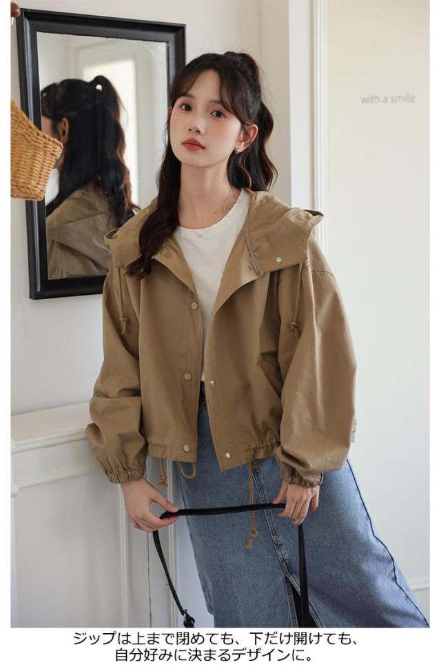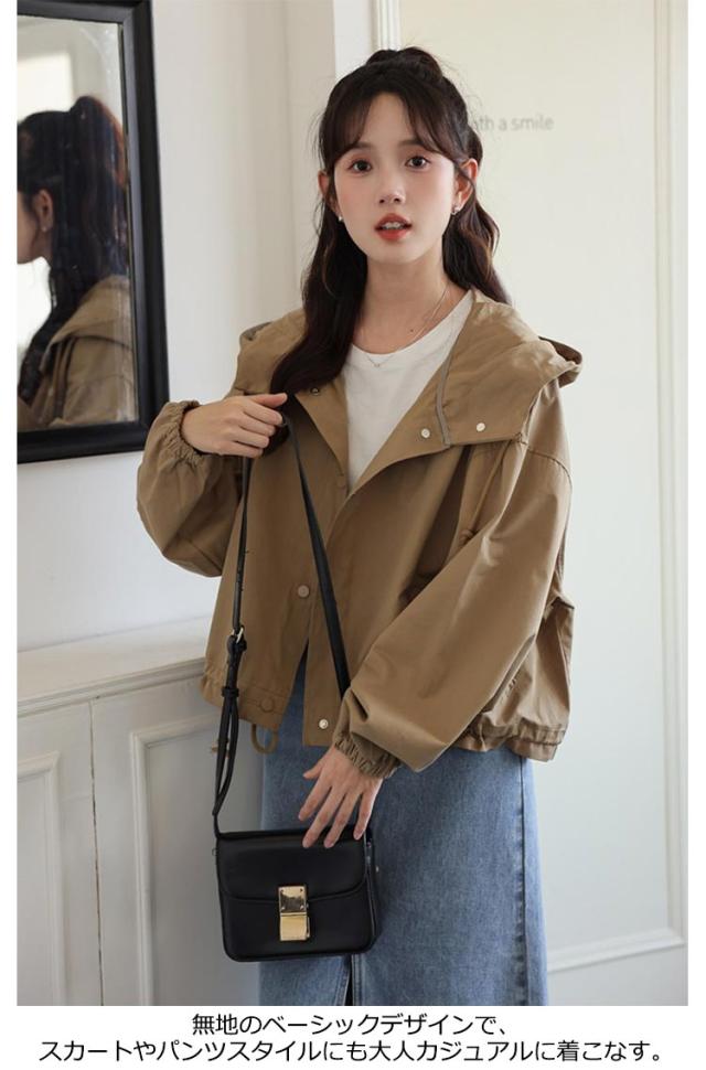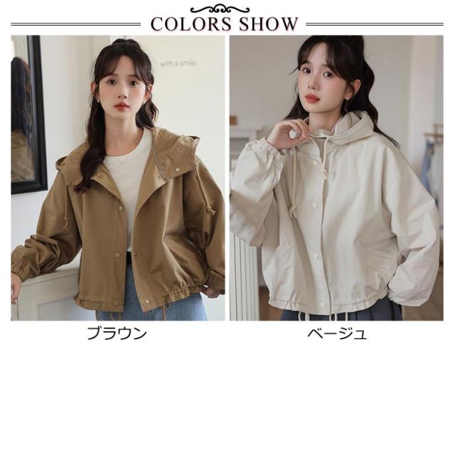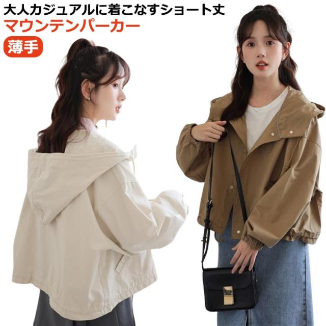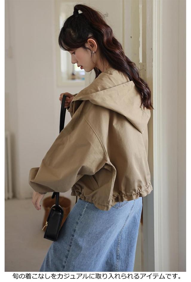 送料無料 マウンテンパーカー 春 レディース ショート パーカー アウター ブルゾン ジャケット フード付き ぽわん袖 ライトアウター モッズコート スプリングコート 羽織り ボリューム袖 長袖 ショート丈 無地 可愛い おしゃれ カジュアル