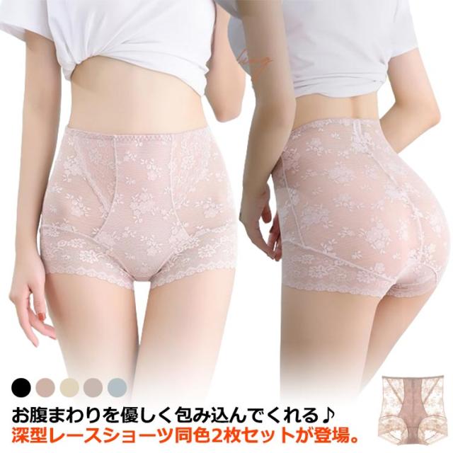 送料無料 2枚セット ショーツ 下着 インナー ハイウエスト レース 総レース メッシュ 冷え防止 お腹引き締め 深履き ストレッチ スカラップ 伸縮性 響きにくい 可愛い 大人 上品 おしゃれ 大きいサイズ