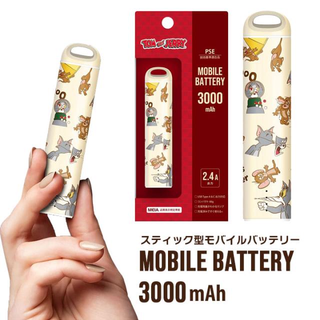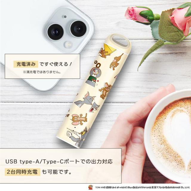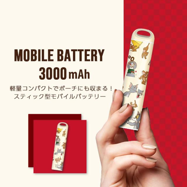 トムとジェリー スティック型モバイルバッテリー 3000mAh 軽量 コンパクト USB type-A Type-C 2台同時充電 ストラップホール付 TOMandJERRY トムジェリ メール便送料無料