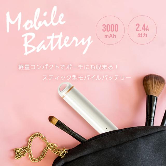 軽量コンパクトでポーチにも収まるスティック型モバイルバッテリー 3000mAhです。