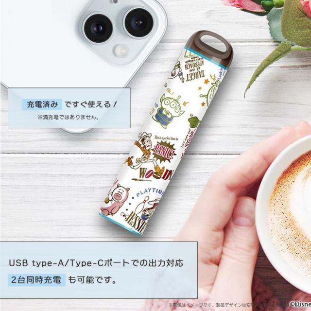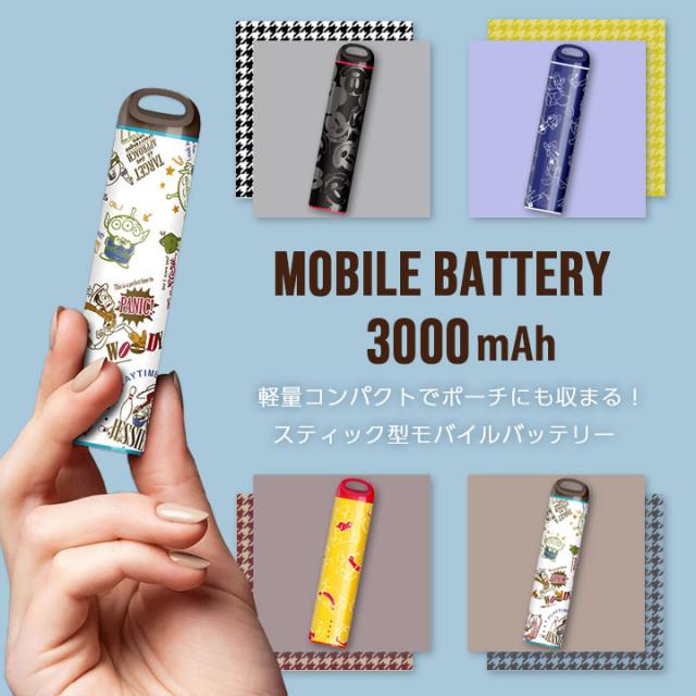 Disney スティック型モバイルバッテリー 3000mAh 軽量 コンパクト USB type-A Type-C 2台同時充電 ストラップホール付 ミッキーマウス ドナルドダック くまのプーさん トイストーリー ディズニー メール便送料無料
