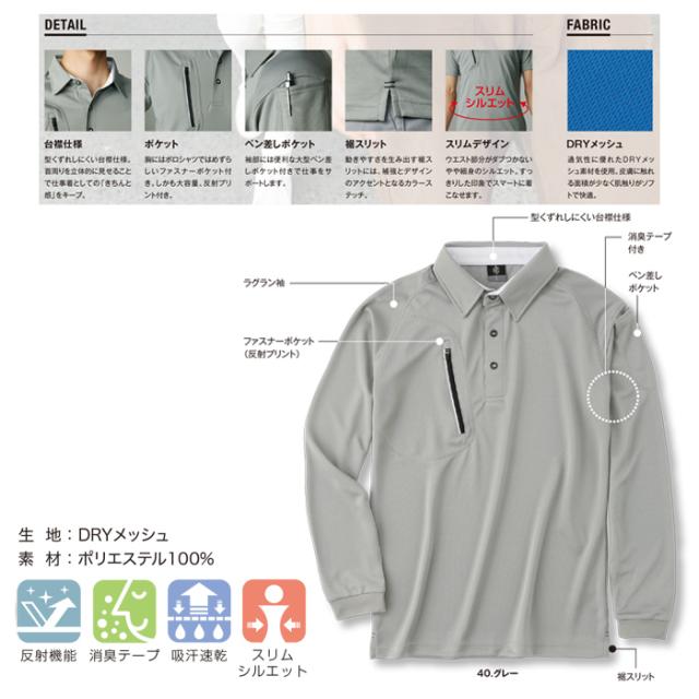 ポロシャツ 小倉屋 POLOIZM 長袖 ドライメッシュ 吸汗 速乾 消臭 ファスナーポケット 長袖ポロ 36751 SS〜6L 【送料無料】スリムスタイル スタイリッシュ ペン差し 5色 男女兼用 消臭 事務服 作業服 涼しい クール 小倉屋ポロシャツ agesugi_sfa
