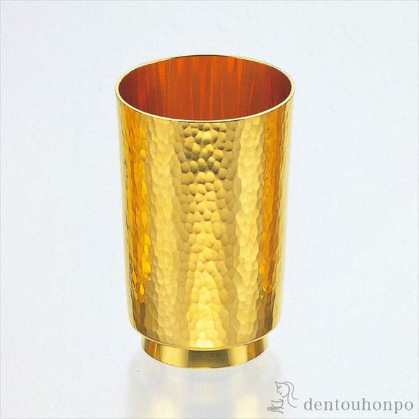 「送料無料」 純金 湯呑 鎚目 小 130g ( 木札名入れ有料 高級 コレクション 美術品 工芸品 伝統 東京銀器(金工芸) 周年 創立 )