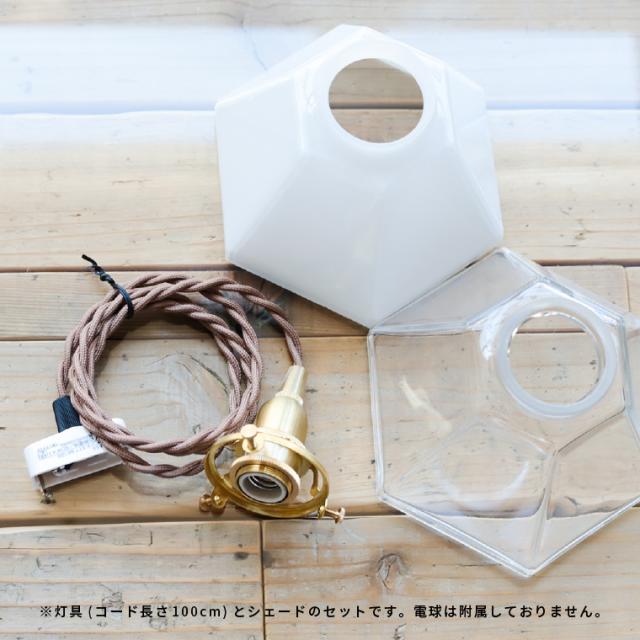 『E17 3点留めペンダントライト 100cm』+『ガラスシェードポリゴン』の灯具・シェードセット。