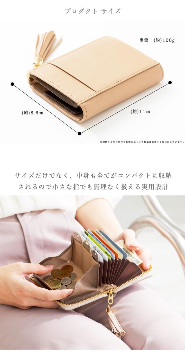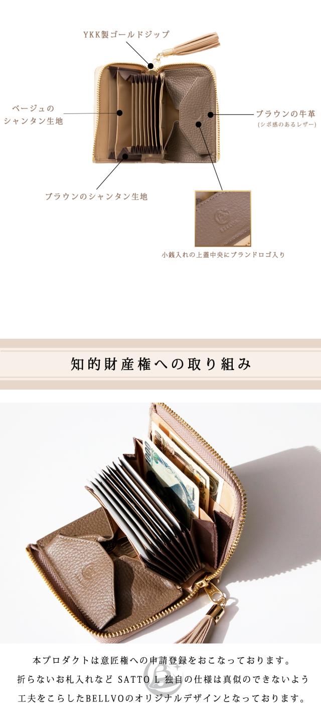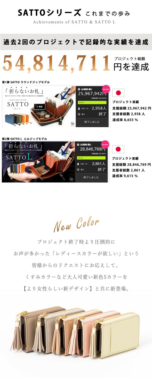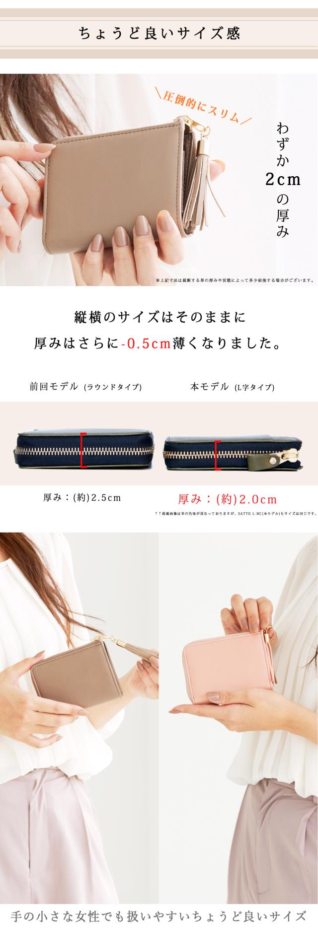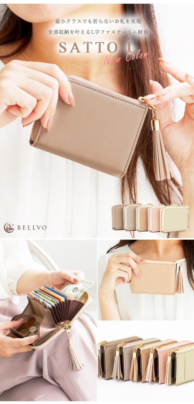 SATTO L サットエル お札が折れない ミニ財布 レディース タッセル付き L字ファスナー コンパクト財布 satto くすみカラー 財布 薄い ブランド 大容量 蛇腹 スキミング防止 BOX型小銭入れ 鍵3本収納 bellvo
