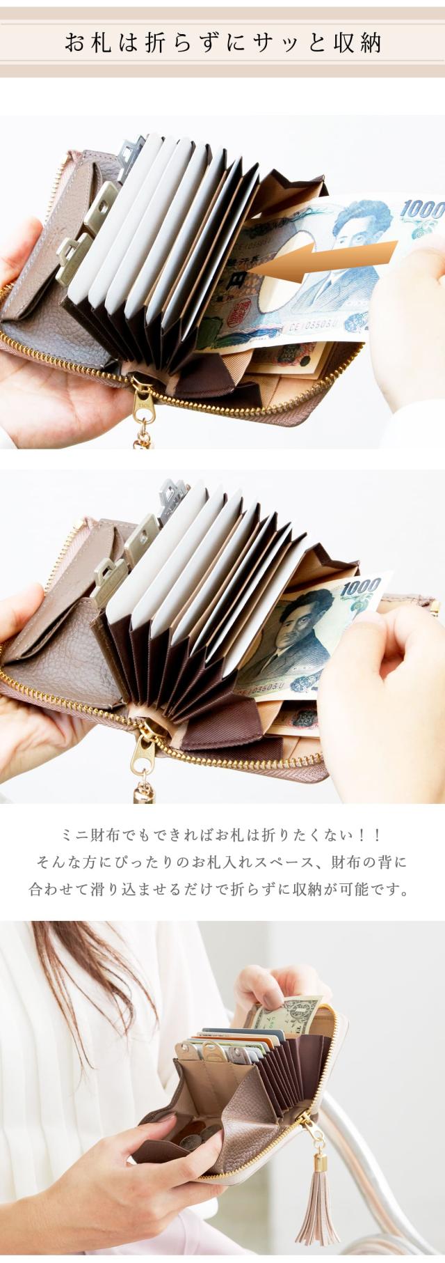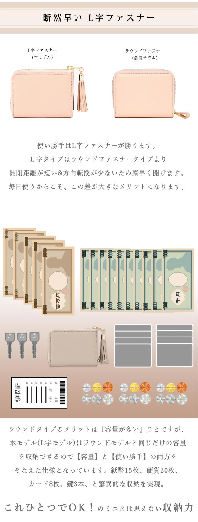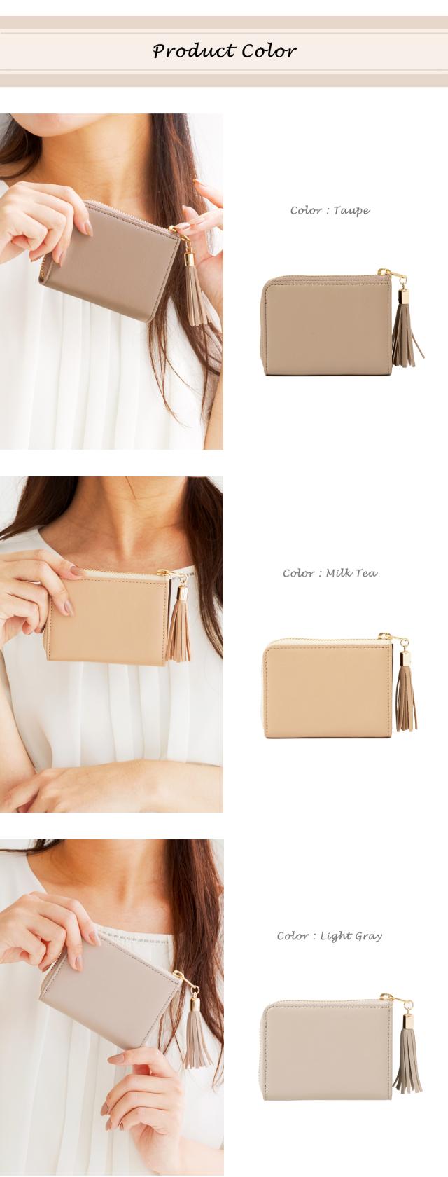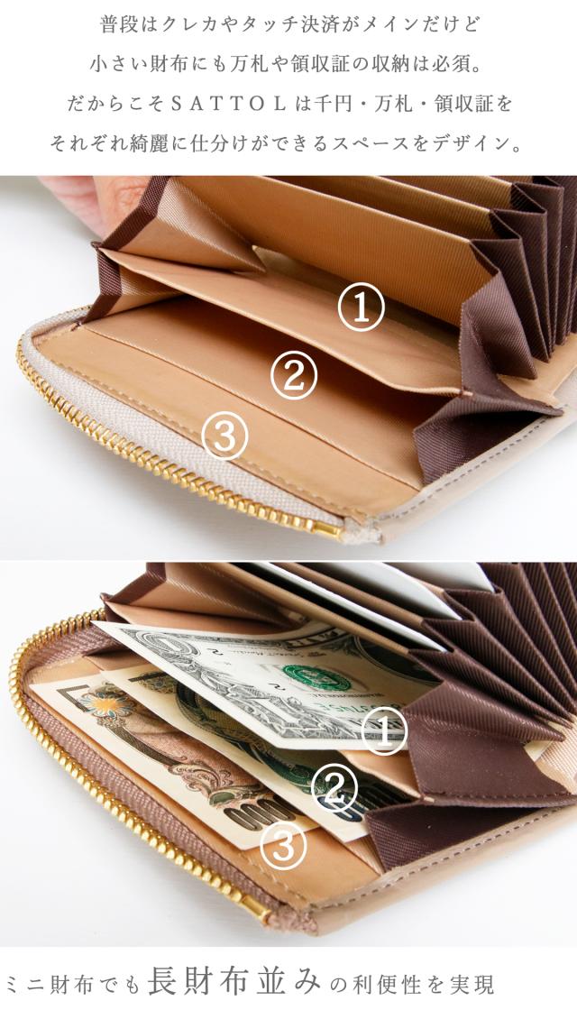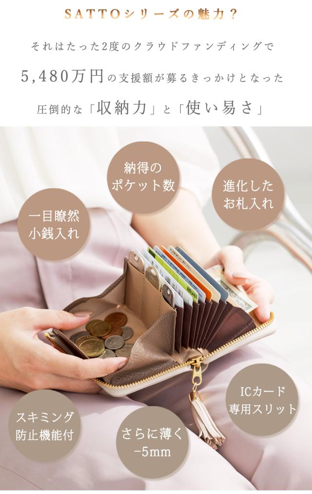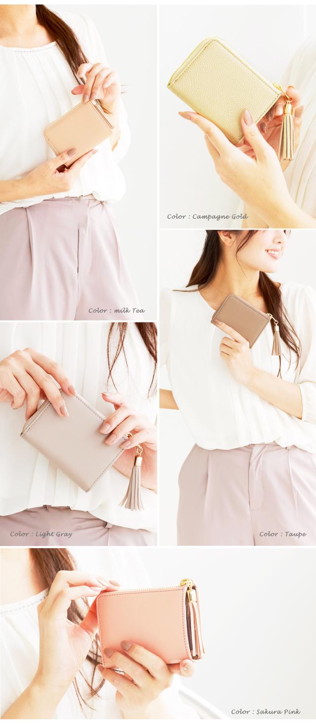 SATTO L サットエル お札が折れない ミニ財布 レディース タッセル付き L字ファスナー コンパクト財布 satto くすみカラー 財布 薄い ブランド 大容量 蛇腹 スキミング防止 BOX型小銭入れ 鍵3本収納 bellvo
