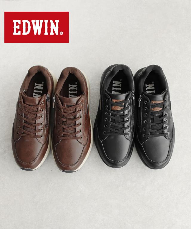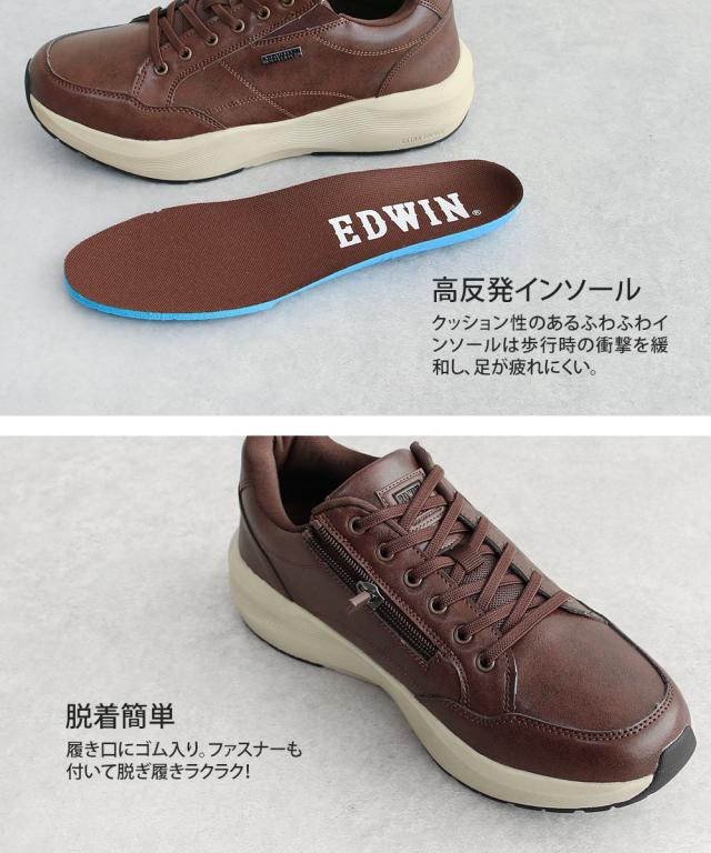 エドウィン 防水 スニーカー メンズ カジュアルシューズ ビジネス おしゃれ 黒 ローカット アウトドア 蒸れない 疲れにくい 歩きやすい 幅広設計 PUレザー ファスナー 軽い 梅雨 大人 通勤 紳士靴 男性用 幅広 甲高 衝撃吸収 ブラック ブラウン edwin 7368