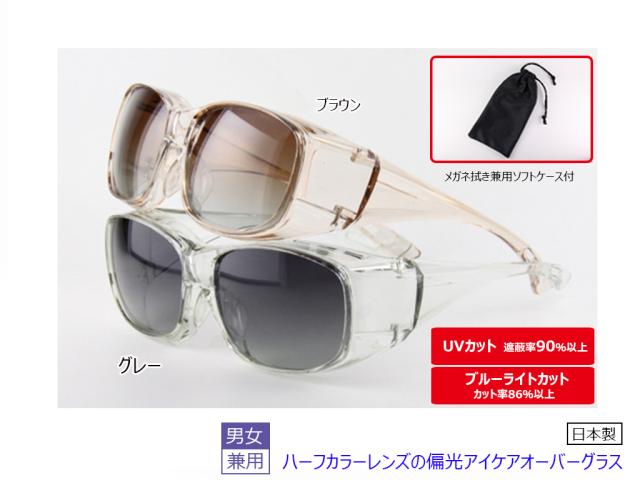 偏光レンズ 視界クリア 紫外線カット ブルーライトカット 花粉対策にも 男女兼用「ハーフカラーレンズの偏光アイケアオーバーグラス」