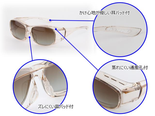 ■商品サイズ:巾16×高さ4.7×つるの長さ16cm(適応メガネサイズ:巾14.5×高さ4.1cmまで)■商品重量(約):35g■材質:レンズ/TAC、フレーム/ポリカーボネイト■カラー:ブラウン、グレー■仕様:可視光線透過率(約):ブラウン18%、グレー13%、紫外線カット約99%(共通)、ブルーカット率(約):ブラウン/89.9%、グレー/86.5%■原産国;日本