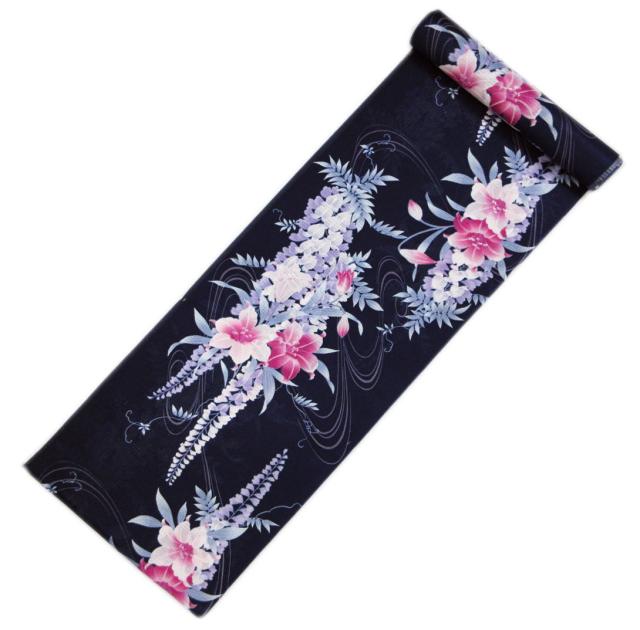 【訳有り 少難あり】 浴衣 ゆかた 反物 未仕立て 女性用 綿 濃紺地銀ラメ入り百合藤流水 レディース 和柄 古典柄