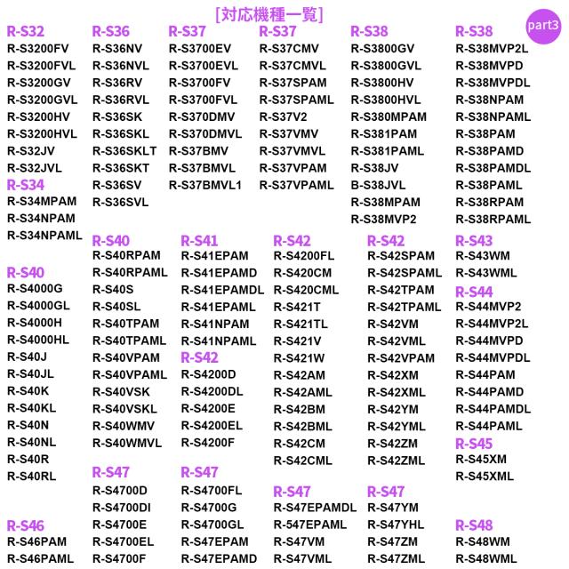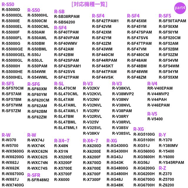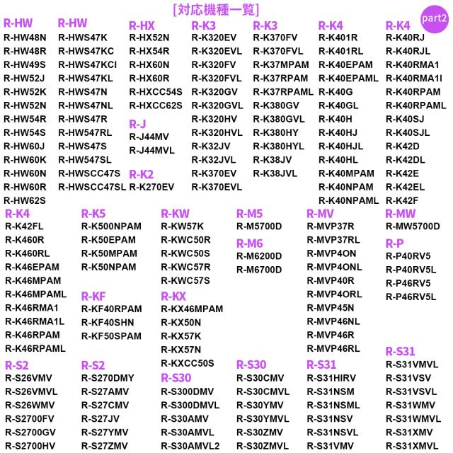 | R-382SPL,R-447,R-448,R-A44Y,R-A5700,R-A5700-1,R-A6200,R-A6200-1,R-B5200,R-B5200-1,R-B5700,R-B5700-1,R-B6200,R-B6200-1,R-B6700,R-B6700-1,R-BS26VLV,R-BS421V,R-C4800,R-C5200,R-C5700,R-C6200,R-C6700,R-CD40NPAM,R-CD40NPAML,R-CD46NPAM,R-CD46NPAML,R-CF42TPAM,R-CF42VPAM,R-CF44RPAM,R-CF48XM,R-CK40EPAM,R-CK40EPAML,R-CK40RPAM,R-CK40RPAML,R-CK46EPAM,R-CK46EPAML,R-CK46MPAM,R-CK46MPAML,R-CK46RPAM,R-CK46RPAML,R-CS34SPAM,R-CS34SPAML,R-CS37WMV,R-CS37YMV,R-CS38MVP2,R-CS38MVP2L,R-CS41EPAM,R-CS41EPAML,R-CS41XM,R-CS44MVP2,R-CS44MVP2L,R-CS44PAM,R-CS44PAML,R-CS47EPAM,R-CS47EPAML,R-CS4800E,R-CW5200,R-CX6700,R-D3700,R-D37NPAM,R-D37NPAML,R-D40NPAM,R-D40NPAML,R-D44MVP2,R-D44PAM,R-D46NPAM,R-D46NPAML,R-F440D,R-F440E,R-F440F,R-F480D,R-F480E,R-F480F,R-F480G,R-F48HG,R-F48M1,R-F48M2,R-F48M3,R-F48M4,R-F48MG,R-F510G,R-F51HG,R-F51HK,R-F51M1,R-F51M2,R-F51M3,R-F51M4,R-F51MG,R-F520D,R-F520E,R-F520F,R-F570DM,R-F570EM,R-FR48M3,R-FR48M4,R-FR48M5,R-G4800D,R-G4800E,R-G4800F,R-G5200D,R-G5200E,R-G5200F,R-G5700D,R-G5700E,R-G5700F,R-G6200D,R-G6200E,R-G6200F,R-G6700D,R-GS4800H,R-GS5100H,R-GW5700D,R-GW6200D,R-GW6700D,R-H48N,R-H48R,R-H49S,R-H52N,R-H54R,R-H54S,R-HS48RG,R-HS48RGL,R-HS52RG,R-HS52RGL,R-HW48N,R-HW48R,R-HW49S,R-HW52J,R-HW52K,R-HW52N,R-HW54R,R-HW54S,R-HW60J,R-HW60K,R-HW60N,R-HW60R,R-HW62S,R-HWS47K,R-HWS47KC,R-HWS47KCL,R-HWS47KL,R-HWS47N,R-HWS47NL,R-HWS47R,R-HWS47RL,R-HX52N,R-HX54R,R-HX60N,R-HX60R,R-HXCC54S,R-HXCC62S,R-J44MV,R-J44MVL,R-K270EV,R-K320EV,R-K320EVL,R-K320FV,R-K320FVL,R-K320GV,R-K320GVL,R-K320HV,R-K320HVL,R-K32JV,R-K32JVL,R-K370EV,R-K370EVL,R-K370FV,R-K370FVL,R-K37RPAM,R-K37RPAML,R-K380GV,R-K380GVL,R-K380HV,R-K380HVL,R-K38JV,R-K38JVL,R-K401R,R-K401RL,R-K40EPAM,R-K40EPAML,R-K40G,R-K40G-1,R-K40GL,R-K40H,R-K40HJ,R-K40HJL,R-K40HL,R-K40MPAM,R-K40NPAM,R-K40NPAML,R-K40RJ,R-K40RJL,R-K40RMA1,R-K40RMA1L,R-K40RPAM,R-K40RPAML,R-K42D,R-K42DL,R-K42E,R-K42EL,R-K42F,R-K42FL,R-K460R,R-K460RL,R-K46EPAM,R-K46MPAM,R-K46MPAML,R-K46RMA1,R-K46RMA1L,R-K46RPAM,R-K46RPAML,R-K500NPAM,R-K50EPAM,R-K50NPAM,R-KF40RPAM,R-KF40SHN,R-KF50SPAM,R-KW57K,R-KWC50R,R-KWC57R,R-KX50N,R-KX57K,R-KX57N,R-KXCC50S,R-M5700D,R-M6200D,R-M6700D,R-MVP37R,R-MVP37RL,R-MVP40N,R-MVP40NL,R-MVP40R,R-MVP40RL,R-MVP46N,R-MVP46NL,R-MVP46R,R-MVP46RL,R-MW5700D,R-P40RV5,R-P40RV5L,R-P46RV5,R-P46RV5L,R-S26VMV,R-S26VMVL,R-S26WMV,R-S2700FV,R-S2700GV,R-S2700HV,R-S270DMV,R-S27AMV-1,R-S27AMV-2,R-S27CMV,R-S27JV,R-S27YMV,R-S27ZMV,R-S300DMV,R-S300DMVL,R-S30AMV,R-S30AMV-1,R-S30AMV-2,R-S30AMVL,R-S30AMVL-1,R-S30AMVL2,R-S30CMV,R-S30CMVL,R-S30YMV,R-S30YMVL,R-S30ZMV,R-S30ZMVL,R-S31NSM,R-S31NSML,R-S31NSV,R-S31NSVL,R-S31VMV,R-S31VMVL,R-S31VSV,R-S31VSVL,R-S31WMV,R-S31WMVL,R-S31XMV,R-S31XMVL,R-S3200FV,R-S3200FVL,R-S3200GV,R-S3200GVL,R-S3200HV,R-S3200HVL,R-S32JV,R-S32JVL,R-S34NPAM,R-S34NPAML,R-S36NV,R-S36NVL,R-S36RV,R-S36RVL,R-S36SK,R-S36SKL,R-S36SKLT,R-S36SKT,R-S36SV,R-S36SVL,R-S3700EV,R-S3700EVL,R-S3700FV,R-S3700FVL,R-S370DMV,R-S370DMVL,R-S37BMV,R-S37BMV-1,R-S37BMVL,R-S37BMVL1,R-S37CMV,R-S37CMVL,R-S37SPAM,R-S37SPAML,R-S37V2,R-S37VMV,R-S37VMVL,R-S37VPAM,R-S37VPAML,R-S3800GV,R-S3800GVL,R-S3800HV,R-S3800HVL,R-S381PAM,R-S381PAML,R-S38JV,R-S38JVL,R-S38MVP2,R-S38MVP2L,R-S38MVPD,R-S38MVPDL,R-S38NPAM,R-S38NPAML,R-S38PAM,R-S38PAMD,R-S38PAMDL,R-S38PAML,R-S38RPAM,R-S38RPAML,R-S4000G,R-S4000GL,R-S4000H,R-S4000HL,R-S40J,R-S40JL,R-S40K,R-S40KL,R-S40N,R-S40NL,R-S40R,R-S40RL,R-S40RPAM,R-S40RPAML,R-S40TPAM,R-S40TPAML,R-S40VPAM,R-S40VPAML,R-S40VSK,R-S40VSKL,R-S40WMV,R-S40WMVL,R-S41EPAM,R-S41EPAMD,R-S41EPAMDL,R-S41EPAML,R-S41NPAM,R-S41NPAML,R-S4200D,R-S4200DL,R-S4200E,R-S4200EL,R-S4200F,R-S4200FL,R-S420CM,R-S420CML,R-S421T,R-S421TL,R-S421V,R-S421W,R-S42AM,R-S42AM-1,R-S42AML,R-S42AML-1,R-S42BM,R-S42BM-1,R-S42BML,R-S42BML-1,R-S42CM,R-S42CML,R-S42SPAM,R-S42SPAML,R-S42TPAM,R-S42TPAML,R-S42VM,R-S42VML,R-S42VPAM,R-S42XM,R-S42XML,R-S42YM,R-S42YML,R-S42ZM,R-S42ZML,R-S43WM,R-S43WML,R-S44MVP2,R-S44MVP2L,R-S44MVPD,R-S44MVPDL,R-S44PAM,R-S44PAMD,R-S44PAMDL,R-S44PAML,R-S45XM,R-S45XML,R-S46PAM,R-S46PAML,R-S4700D,R-S4700DL,R-S4700E,R-S4700EL,R-S4700F,R-S4700FL,R-S4700G,R-S4700GL,R-S47EPAM,R-S47EPAMD,R-S47EPAMDL,R-S47EPAML,R-S47VM,R-S47VML,R-S47YM,R-S47YML,R-S47ZM,R-S47ZML,R-S48WM,R-S48WML,R-S5000D,R-S5000DL,R-S5000E,R-S5000EL,R-S5000F,R-S5000FL,R-S5000G,R-S5000GE,R-S5000GEL,R-S5000GL,R-S5000H,R-S5000HE,R-S5000HEL,R-S5000HL,R-S500CM,R-S500CML,R-S50AM,R-S50AM-1,R-S50AML,R-S50AML-1,R-S50BM,R-S50BM-1,R-S50BML,R-S50BML-1,R-S50J,R-S50JL,R-S50PAM,R-S54WM,R-S54WML,R-SB38RPAM,R-SBS6200,R-SF40TPAM,R-SF40VPAM,R-SF40WMV,R-SF42AM,R-SF42AM-1,R-SF42AM-2,R-SF42BM,R-SF42BM-1,R-SF42SPAM,R-SF42SPAM1,R-SF42SV6,R-SF42SV6-1,R-SF42TPAM,R-SF42TPAM1,R-SF42VM,R-SF42VM-1,R-SF42XM,R-SF42YM,R-SF42ZM,R-SF43WM,R-SF440CM,R-SF44RPAM,R-SF44SKT,R-SF44TPAM,R-SF44VSK,R-SF45XM,R-SF45YM,R-SF47SPAM,R-SF47SV6,R-SF47TPAM,R-SF47VM,R-SF47VM-1,R-SF480CM,R-SF48AM,R-SF48AM-1,R-SF48BM,R-SF48BM-1,R-SF48WM,R-SF48ZM,R-SF50TAPAM,R-SF50XM,R-SF50YM,R-SF520CM,R-SF52AM,R-SF52BM,R-SF52BM-1,R-SF52ZM,R-SF54VM,R-SF54WM,R-SF54YM,R-SF55XM,R-SF570CM,R-SF57AM,R-SF57AM-1,R-SF57BM,R-SF57BM-1,R-SF57WM,R-SF57ZM,R-SF60XM,R-SF60YM,R-SF620CM,R-SF62AM,R-SF62AM-1,R-SF62BM,R-SF62BM-1,R-SF62ZM,R-SFR48M2,R-SL470CM,R-SL470CML,R-SL47AM,R-SL47AM-1,R-SL47AML,R-SL47AML1,R-SL47BM,R-SL47BM-1,R-SL47BML,R-SL47BML1,R-V32KV,R-V32KVL,R-V32NV,R-V32NVL,R-V32RV,R-V32RVL,R-V38KV,R-V38KVL,R-V38MVP2,R-V38NV,R-V38NVL,R-V38PAM,R-V38RV,R-V38RVL,R-V40EPAM,R-V44MVP2,R-V44PAM,R-V46EPAM,R-V5400,R-W370,R-W5700,R-WX5600G,R-WX6200G,R-WX62J,R-WX62K,R-WX6700G,R-WX67J,R-WX7400G,R-WX74J,R-WX74K,R-WXC62N,R-WXC62S,R-WXC74N,R-WXC74S,R-X48N,R-X51N,R-X5200E,R-X5200F,R-X5700E,R-X5700F,R-X6000,R-X6200D,R-X6200E,R-X6200F,R-X6700D,R-X6700E,R-X6700F,R-X7300F,R-XG4300G,R-XG4300H,R-XG43J,R-XG43K,R-XG4800G,R-XG4800H,R-XG48J,R-XG48K,R-XG5100G,R-XG5100H,R-XG51J,R-XG5600G,R-XG5600H,R-XG56J,R-XG6200G,R-XG6200H,R-XG6700G,R-XG6700H,R-Y370,R-Y380MV,R-Y5400,R-Y6000,R-YS45RPAM,R-Z370,R-Z5700,R-Z6200,RJK-30,RS34NPAML-1 ※ご購入の前にご希望商品の対応機種一覧より、適合商品である事をご確認願います。 ※購入検討商品に