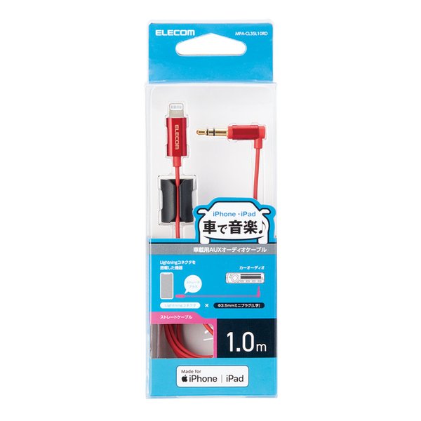 ELECOM エレコム車載用AUXケーブル/Lightning-φ3.5オス L字 /スリムデザイン MPA-CL35L10RD(2590942)