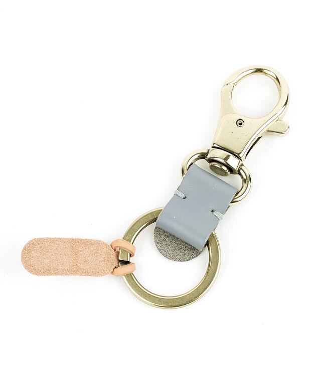 ロゴマークの型押しやレザータグがポイントになったシンプルなキーリング。