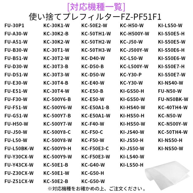 FZ-PF51F1 加湿空気清浄機用 使い捨てプレフィルター fz-pf51f1 シャープ空気清浄機 フィルター (12枚入り/互換品)