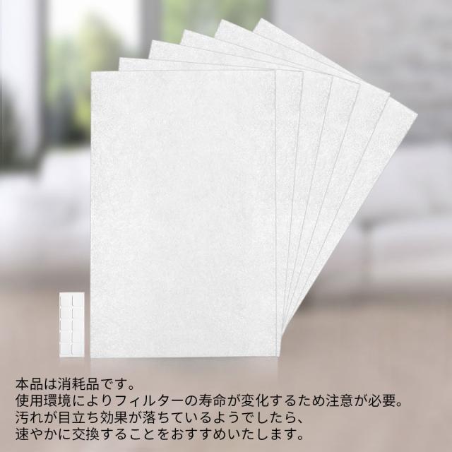 ・寸法(縦×幅): 410×275mm ・後ろパネルのお掃除いらず! 簡単に貼ってはがせる。 ・ホコリ、ペットの毛、タバコのヤニ などの対策にオススメ! ・交換の目安: 約1カ月(使用環境によって交換時期に差が出ます) |