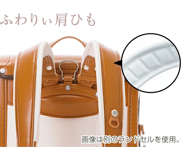 肩ひも付け根の立ち上げ機能で成長に合わせてぴったりフィット。