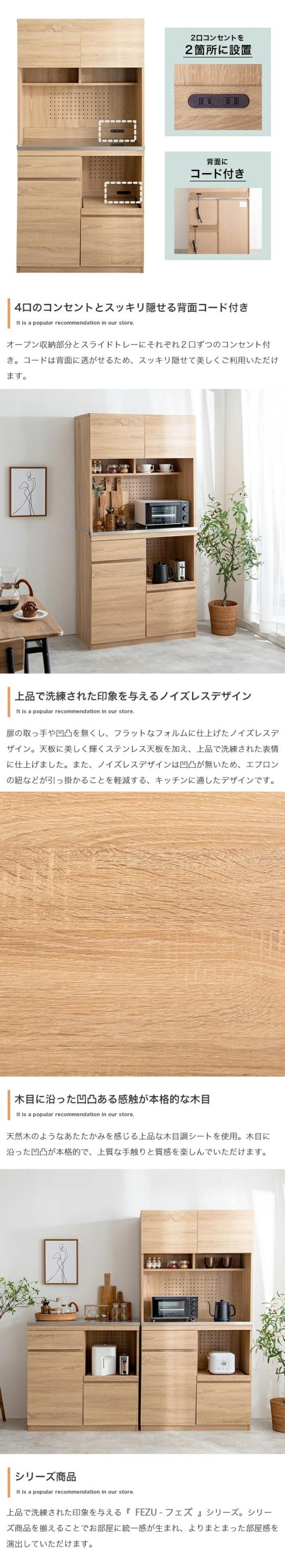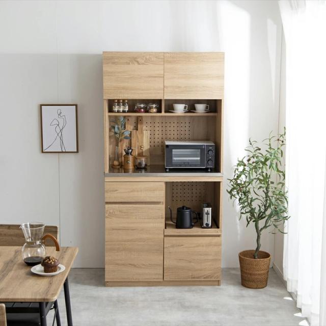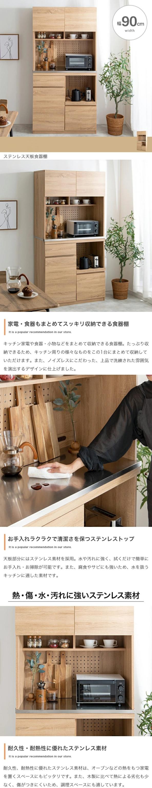 FEZU 食器棚 幅 90 cm キッチンボード ステンレストップ 天板 サイズ 幅90×奥行45×高さ180cm スリム カウンター ダイニングボード カップボードレンジ台 組み立て商品 キッチン収納 食器棚 カップボード 作業台 食器収納 おしゃれ 北欧